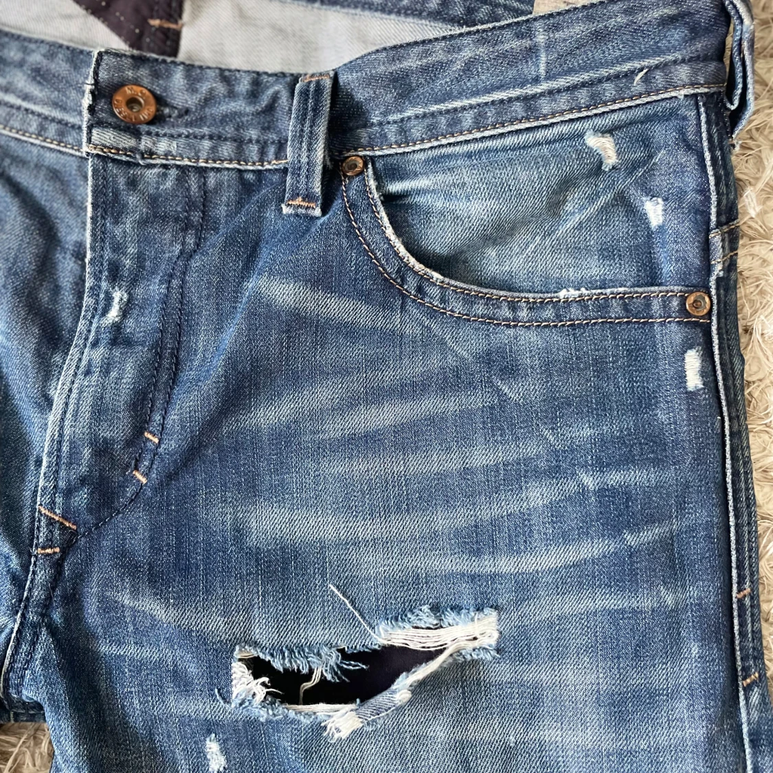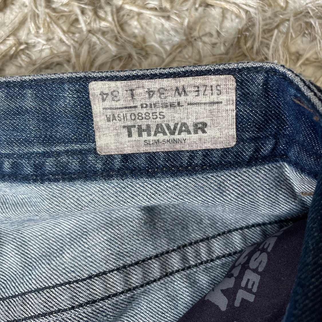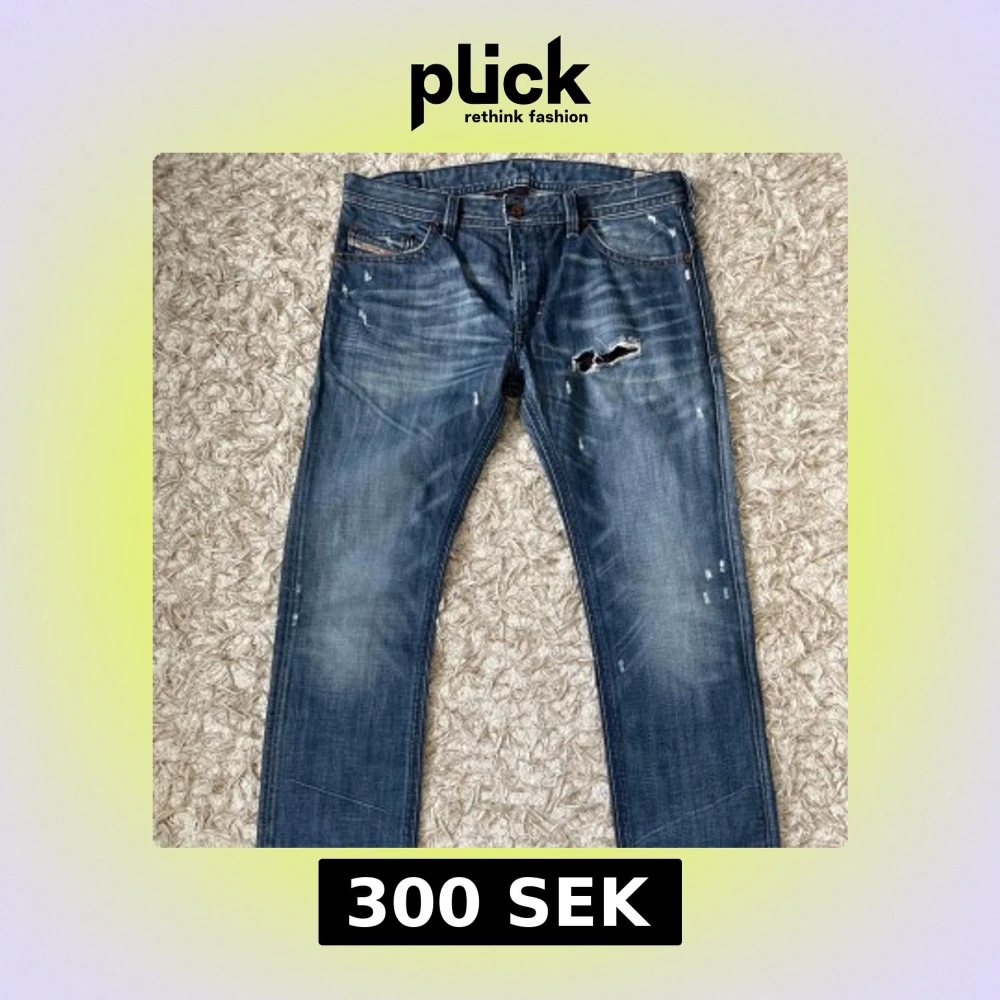 Säljer ett par blå jeans från Diesel med slitningar och hål på framsidan för en riktigt rå streetlook. Klassisk femficksmodell med snygga detaljer och tvättad finish. Perfekta för dig som gillar en avslappnad och trendig stil.