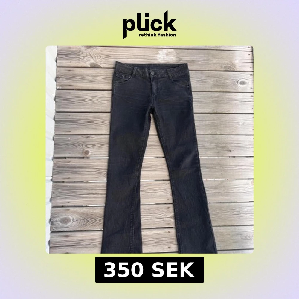 Snygga svarta lågmidjade jeans, pris kan diskuteras. Dom är i ett stretchigt material. Midja: 39cm Total benlängd: 108cm