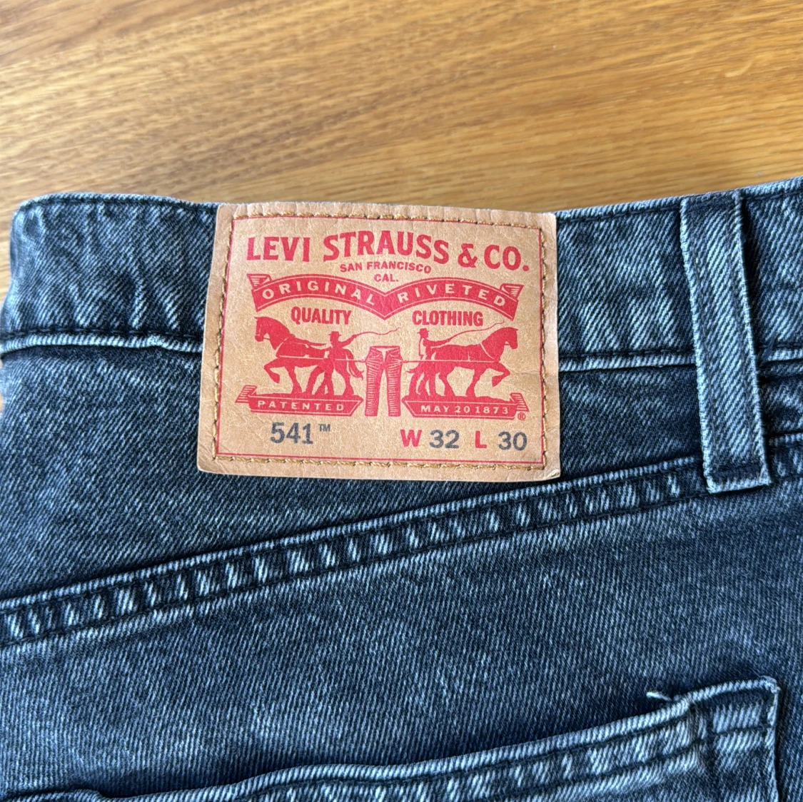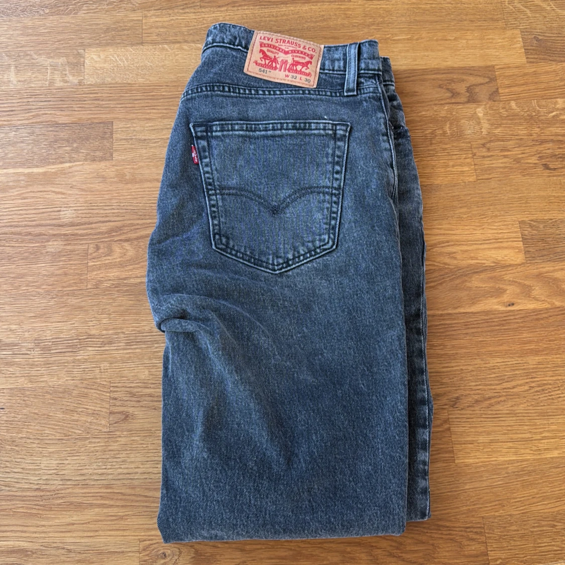 Säljer ett par Levi's 541 jeans i svart tvättad denim. Klassisk femficksmodell med raka ben och normal passform. Snyggt slitna detaljer och ikonisk läderpatch bak i midjan. Perfekta jeans för dig som gillar en avslappnad stil.