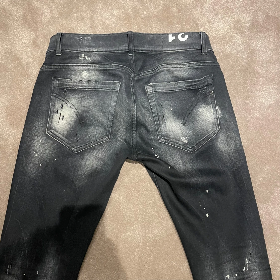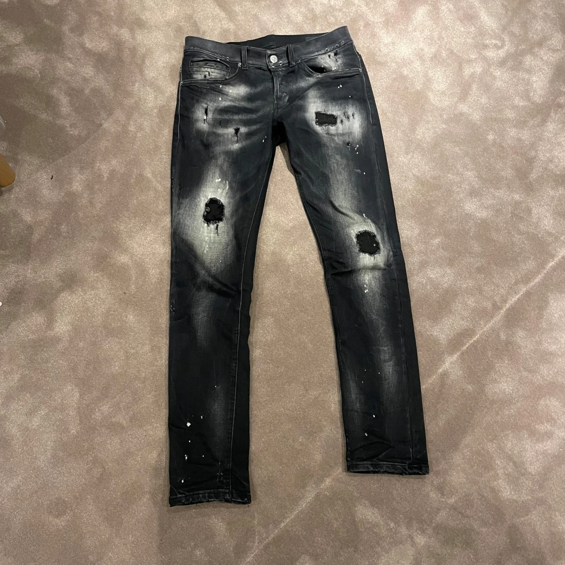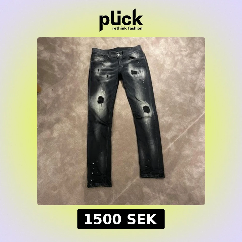 Mörkgråa Dondup george i skick 8/10. Har haft dom i prick 1 år men inte använt så mycket och har köpt en hund som gillar att hoppa på slitningarna därav säljer jag dom. Det ser även mycket bättre ut i verkligheten en på bilderna. Köpta på United fashion i göteborg. Vid frågor är de bara att höra av sig.