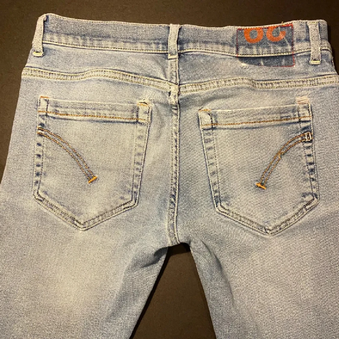 Snygga dondup jeans som är ljusblå . De har en klassisk sliten disign och en bekväm, passformen är George som är skinny/straight . Perfekta för en avslapnad stil. Det passar mig som är 180 lång, W29 L30 Nypris ca 2500kr.