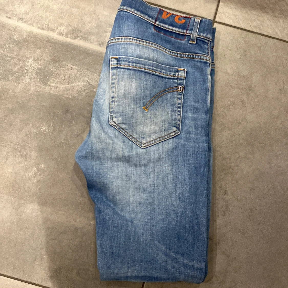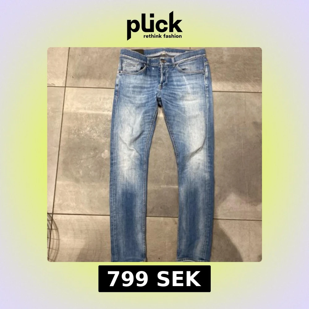 Säljer ett par ljusblå jeans från Dondup, tillverkade i Italien! Passar dig mellan 175-185 då byxans längd är 105 cm! Midjan är 42 centimer. Byxan har lite slitningar men inget som förstör helheten på byxan. Priset är inte hugget i sten, vid frågor hör av er🙌