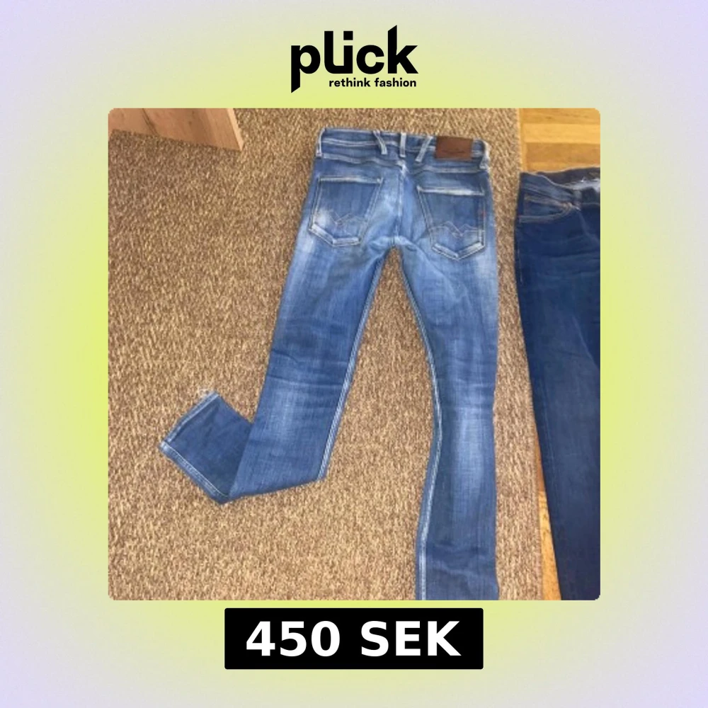 Säljer ett par Replay Anbass jeans i blå tvätt med snygga slitningar och skinny fit. Klassisk femficksmodell med läderpatch bak och dragkedjegylf. Jeansen är i stretchigt denim för en bekväm passform och har en modern look.