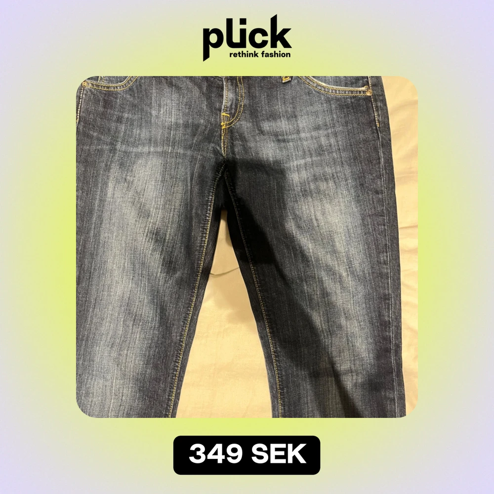 Säljer ett par klassiska blå jeans från Lee i mycket bra skick. De har en snygg tvätt med kontrasterande gul söm och en bekväm passform. Perfekta för både vardag och fest! 🕺