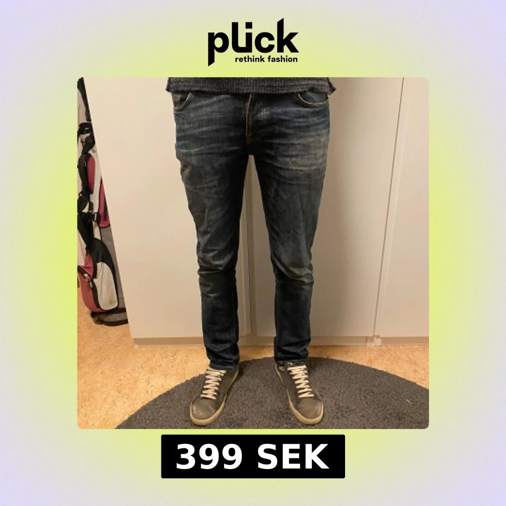 Riktigt snygga nudie jeans! Skön tvätt och storlek 31/32. Modellen är 185cm. Nypris 1600kr. modell: grim tim. Hör av er för frågor!