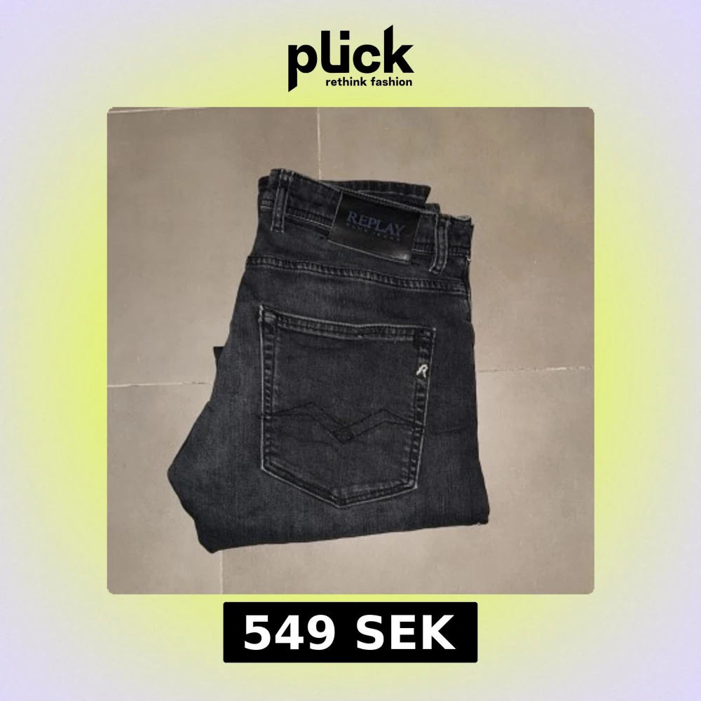 Snygga svarta jeans från Replay med knappgylf och klassisk femficksdesign. Perfekta för en stilren look. Märkeslogga på bakfickan ger en extra touch. Straight fit!!💯🥿🥿