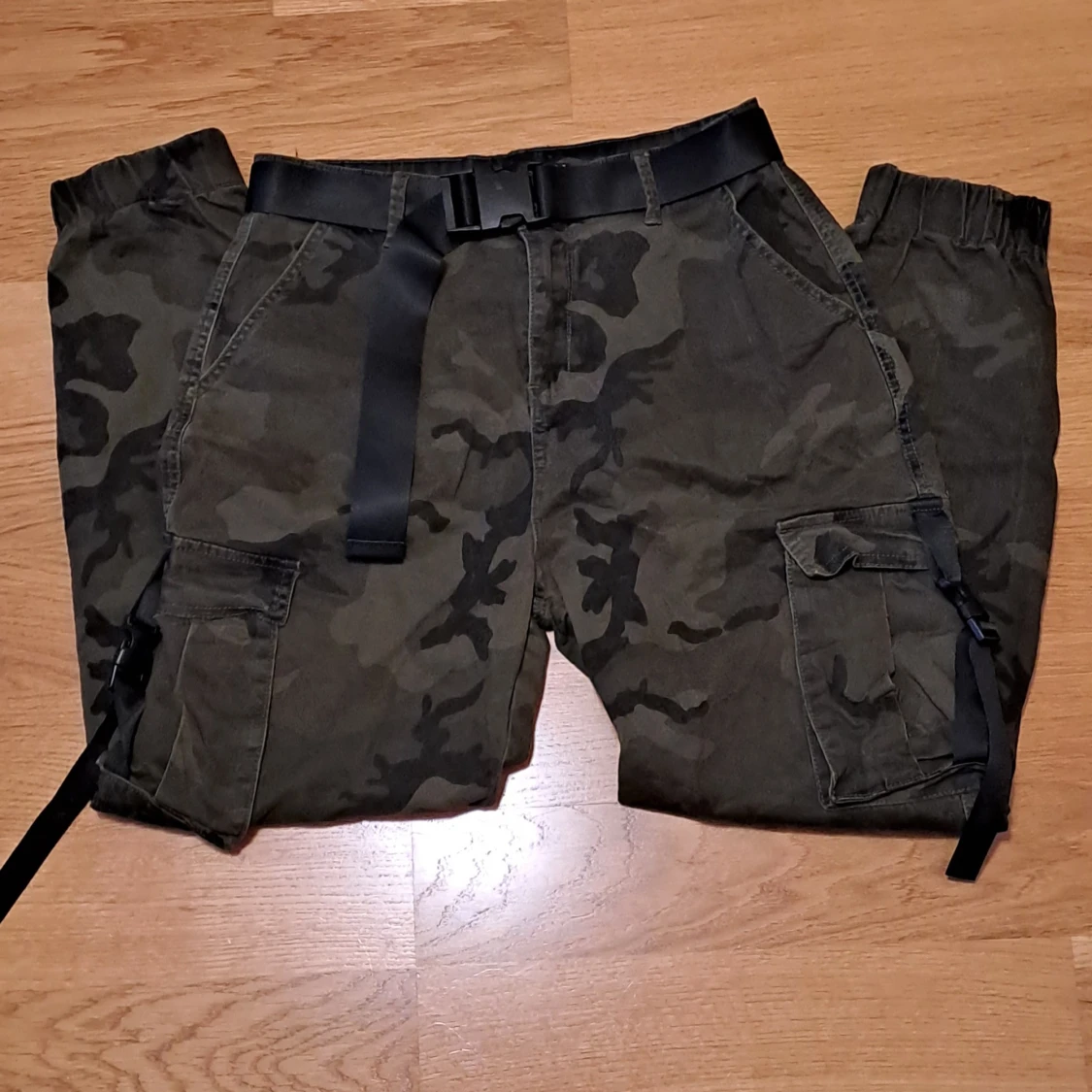 Jättefina och sköna camouflage cargopants. Skärpet kan man spänna som man vill. Använd gärna köp nu, kontakta vid frågor eller fler bilder!!<3