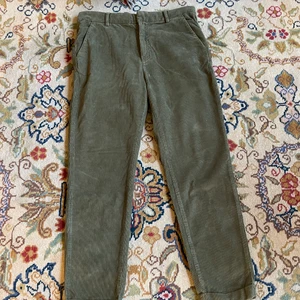 Gröna tapered Manchester byxor köpta för halva priset för 600kr, använda ett fåtal tillfällen då dom blivit för små. Midjemått 41cm, innerben 67cm ytterben 96cm