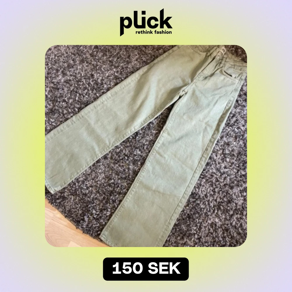 Högmidjade straight leg jeans från lager 157. Modell boulevard. Färgern är en sage green som ser somrig och pastellig ut. Aldrig använda pga för liten storlek.