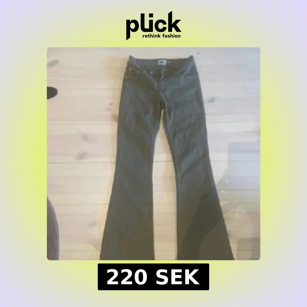 Säljer ett par gröna jeans med bootcut passform. Aldrig använt. Klassisk femficksmodell och låg midjad. Dom r i xs short så passar dig som är runt 160-168