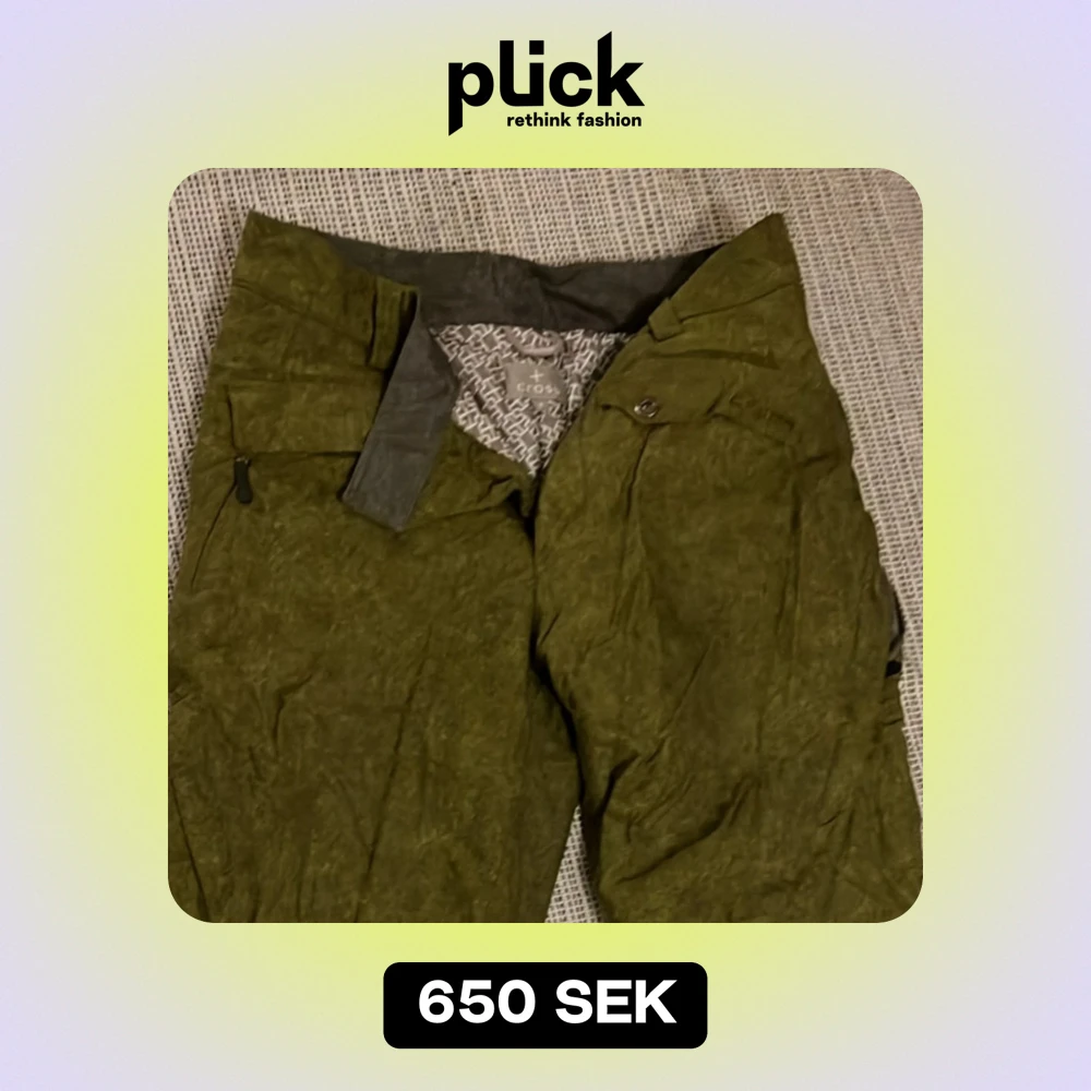 Säljer ett par gröna skidbyxor från CROSS. De har en cool,figursydd look och en knappdetalj vid midjan. Perfekta för en avslappnad stil eller en dag ute i naturen. Passar bra till skid och vintersäsongen.
