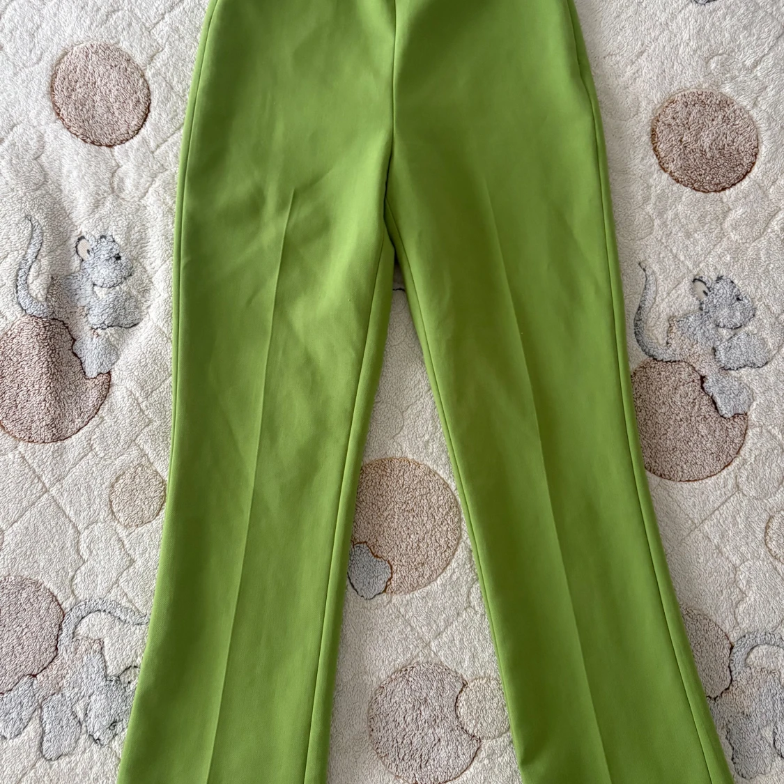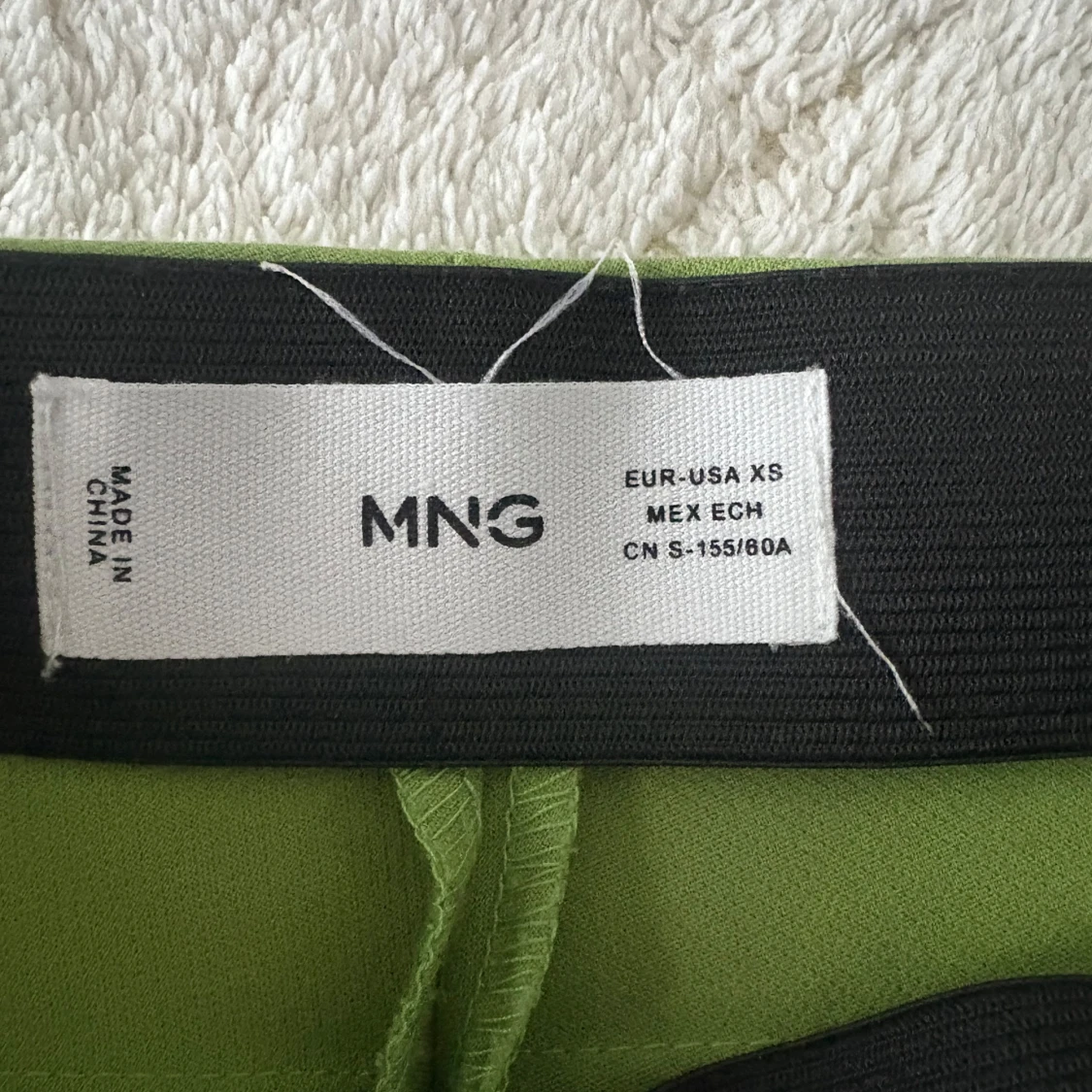 Snygga gröna byxor från MNG i storlek XS. Byxorna har raka ben och en fräsch, ljusgrön färg som verkligen sticker ut. Perfekta för dig som vill ha en färgklick i garderoben. Materialet känns mjukt och bekvämt mot huden.