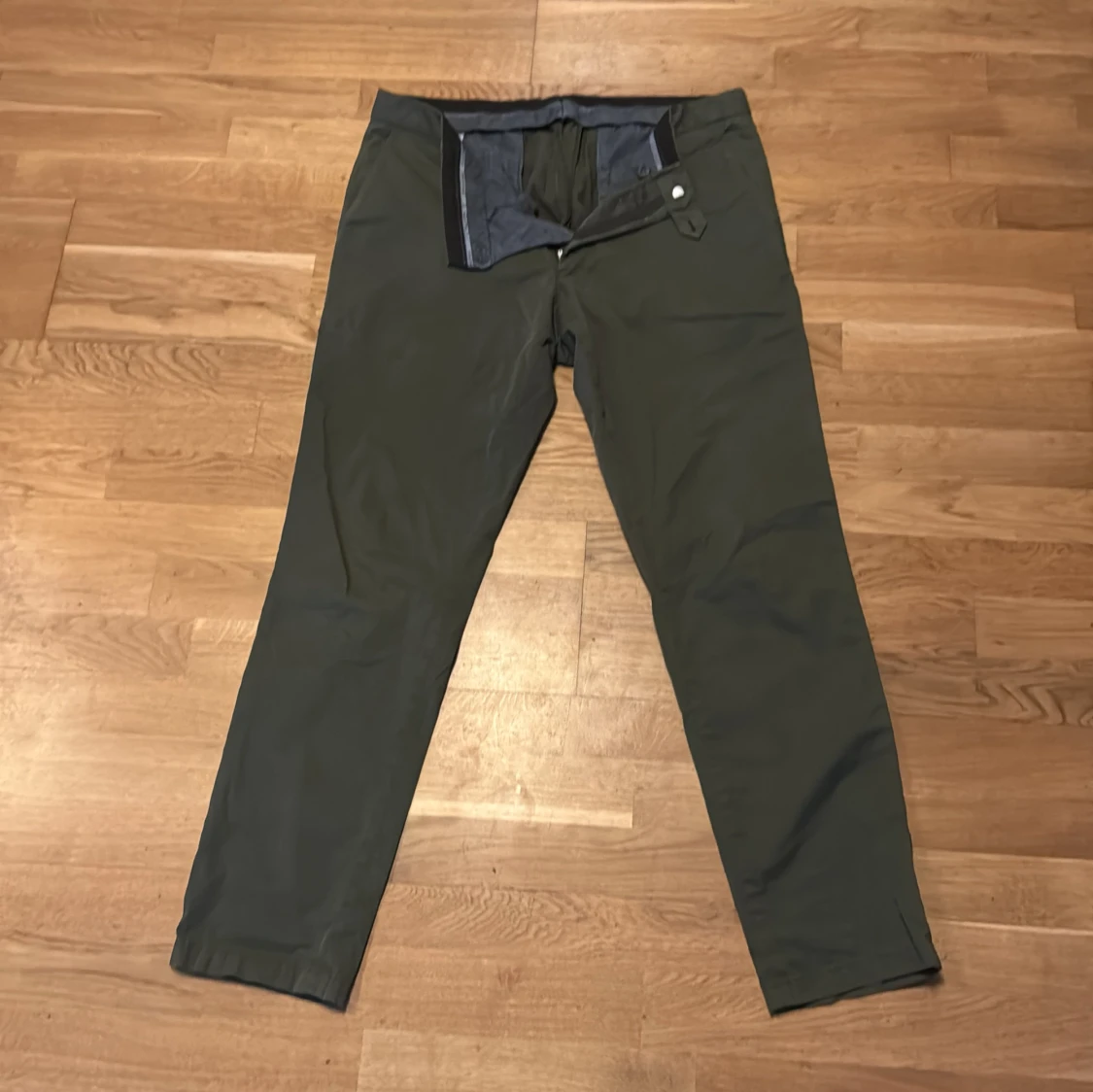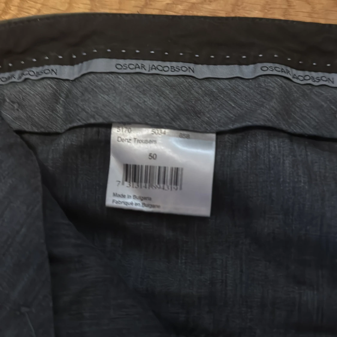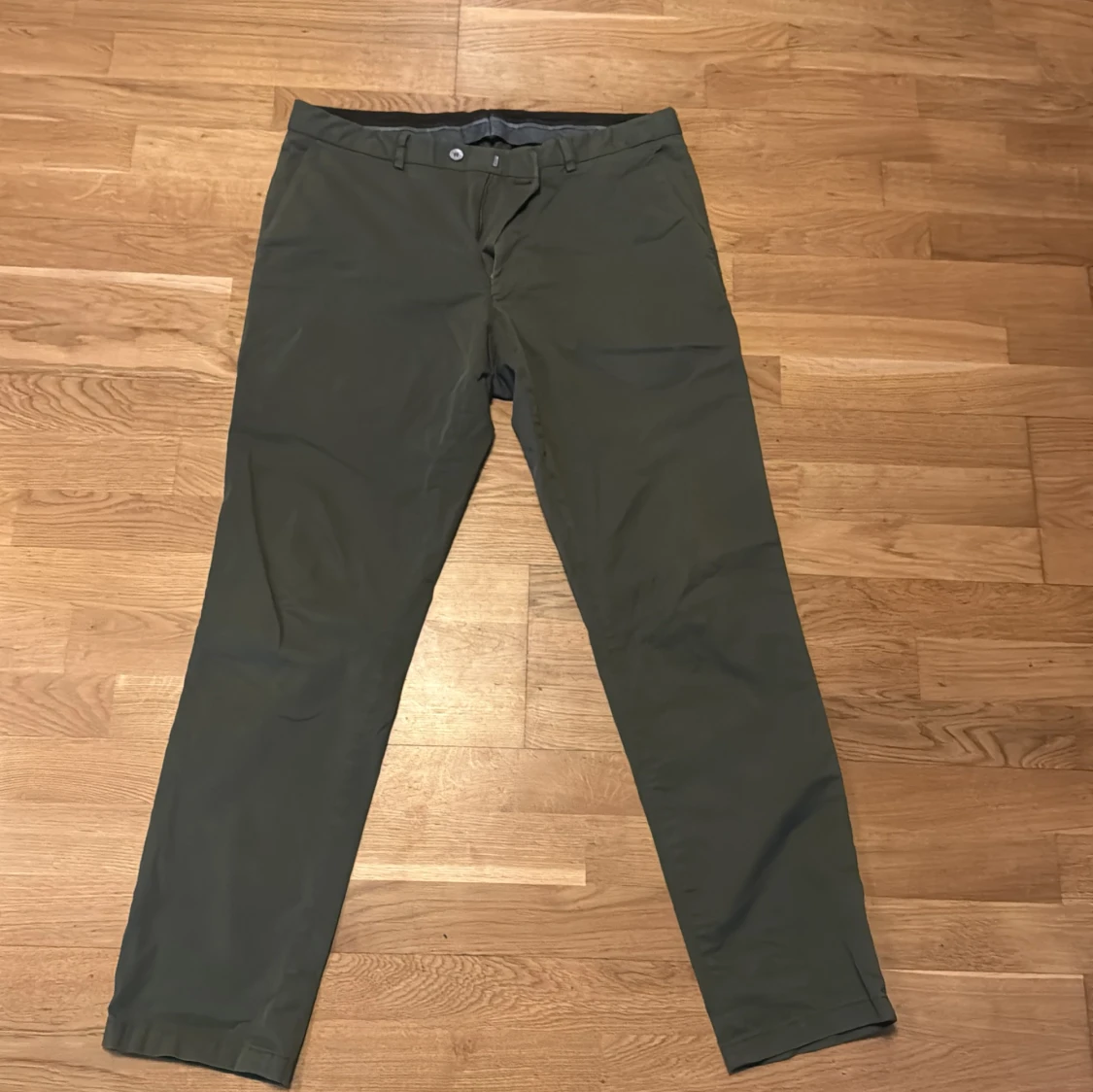Snygga gröna byxor från Oscar Jacobson. De har en klassisk design med knappar och dragkedja framtill. Perfekta för en stilren look.
