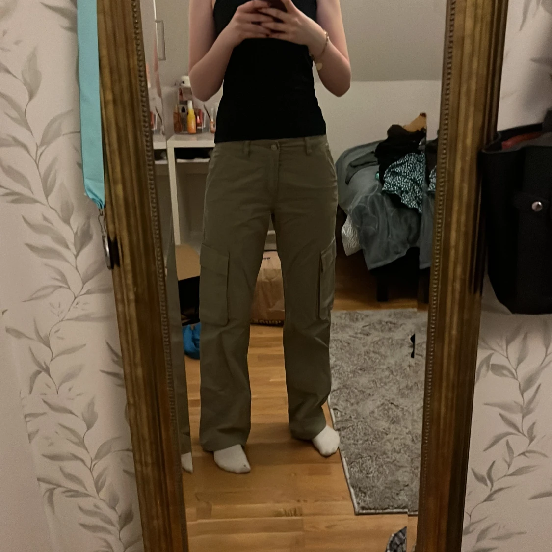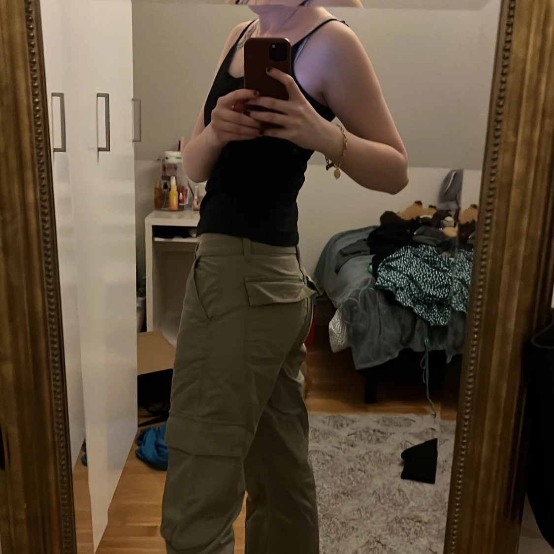 Säljer ett par snygga gröna cargobyxor från Perfect Jeans. Byxorna har flera praktiska fickor och en dragkedja framtill.Pris kan diskuteras