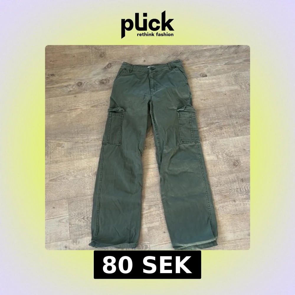 Snygga gröna cargopants från Samsa Collection i storlek 36. Byxorna har raka ben, stora sidofickor och klassisk dragkedja framtill. Tillverkade i bomull för en skön och avslappnad känsla. Perfekta för en chill och streetig look.
