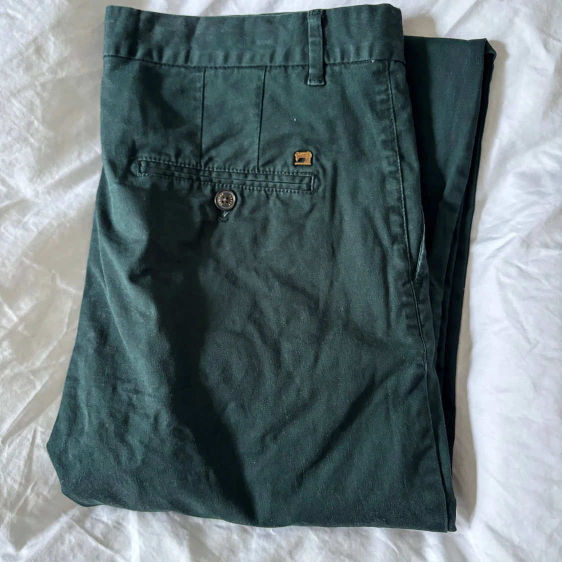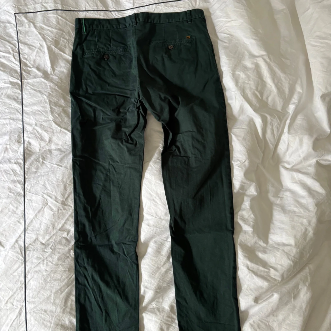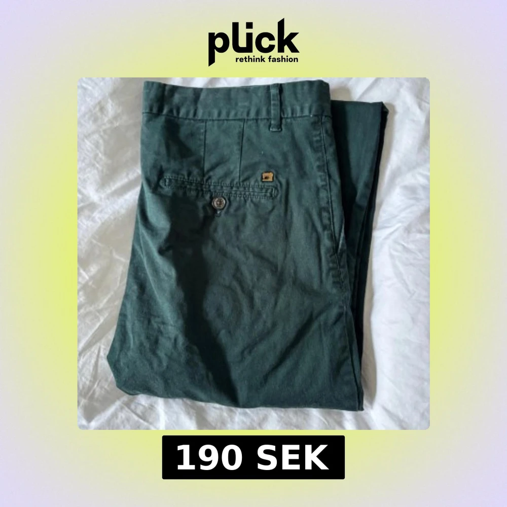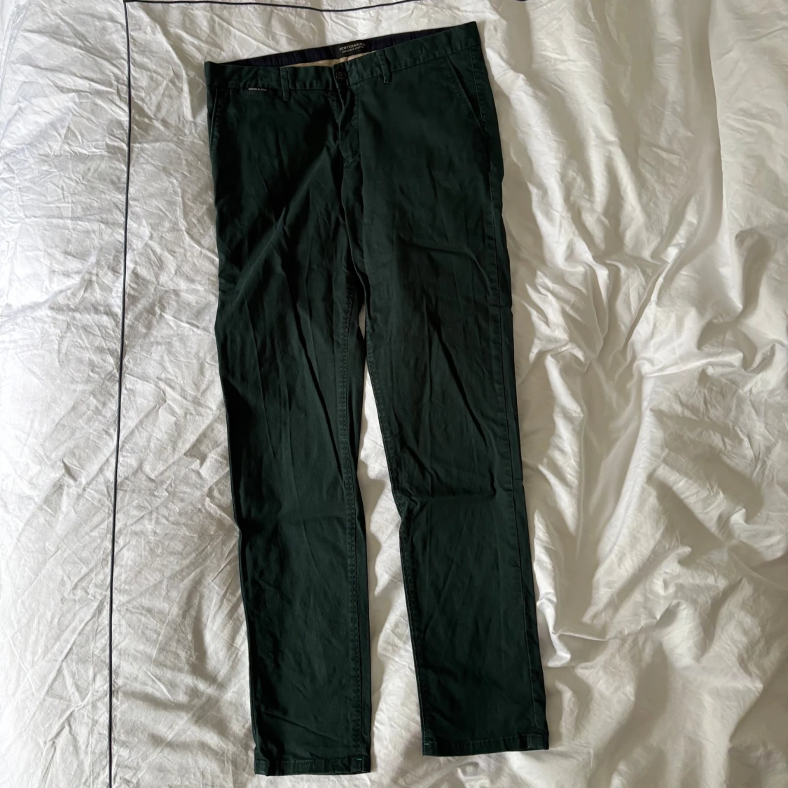 Snygga gröna chinos från Scotch & Soda. Byxorna har en slimfit passform med knappar bak och en stilren design. Perfekta för en avslappnad men ändå uppklädd look.