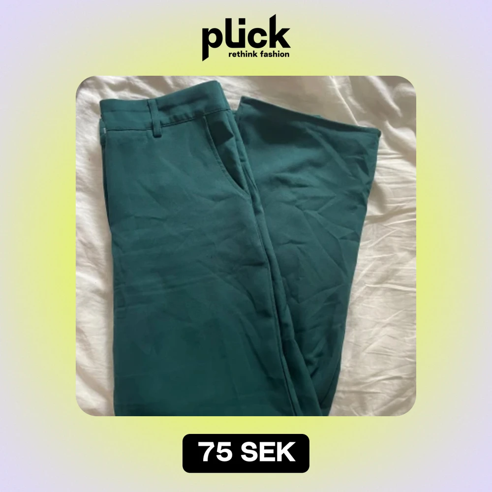 Gröna kostymbyxor från madlady, hög i midjan och knappt använda! Storlek small, och uppsydda till mig som är 160 lång