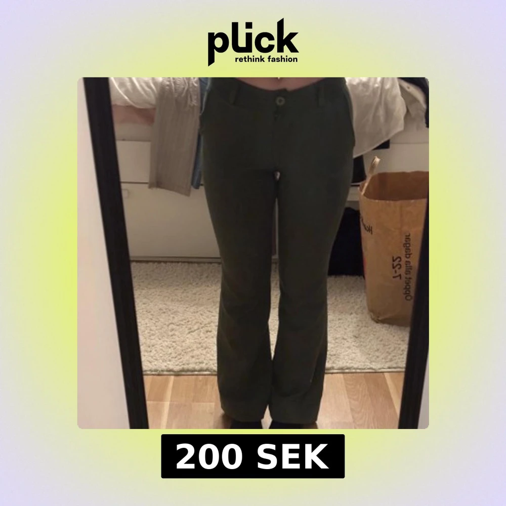 Snygga gröna kostymbyxor från Design by si i storlek XS. Byxorna har en låg/mellan midja och en bootcut-stil som ger en trendig look. Perfekta för att skapa en stilren outfit.