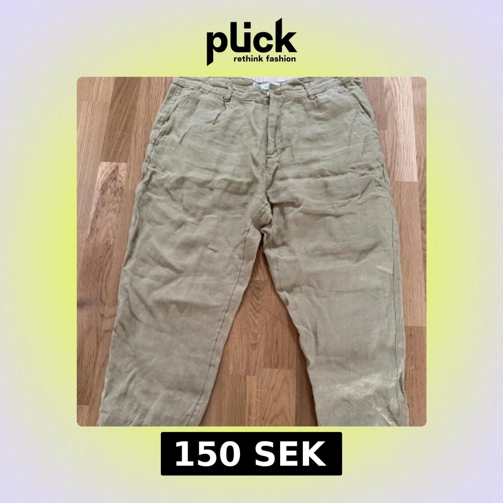 Snygga gröna linnebyxor med tapered passform och klassiska fickor. Perfekta för en chill och stilren look under varmare dagar. Byxorna har hällor för bälte och stängs med dragkedja och knapp.
