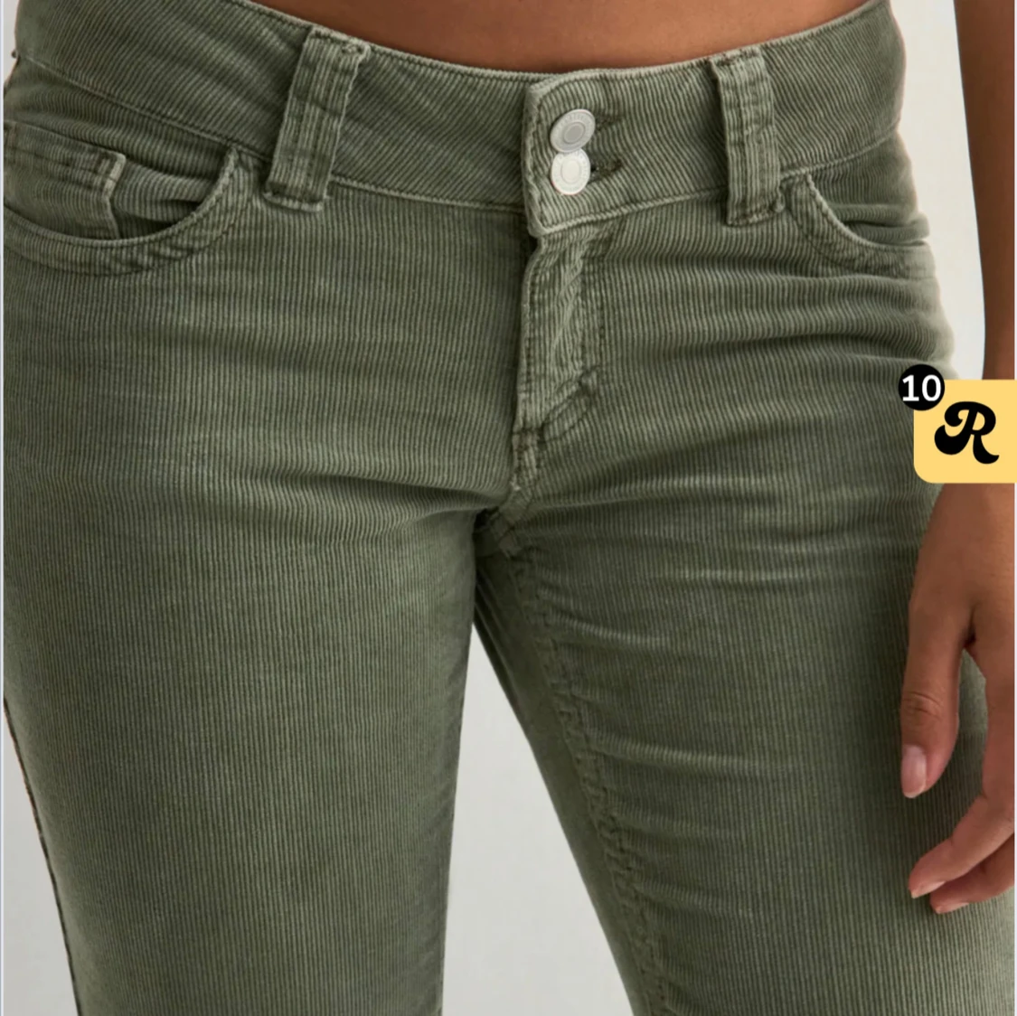 Snygga gröna manchesterbyxor med bootcut och låg midja. Byxorna har två knappar i midjan, klassiska fickor fram och bak samt coola detaljer på bakfickorna. Perfekta för dig som vill ha en trendig och bekväm look.