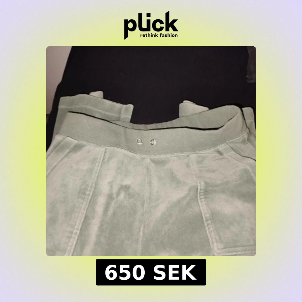 Snygga gröna mjukisbyxor från Juicy Couture i storlek S. Byxorna har bred resår i midjan, stora fickor fram och bak, samt JC-broderi på ena fickan. Mjukt och glansigt material som känns lyxigt och skönt. Använda enstaka gånger, har tyvärr inga snören kvar🙏🏻