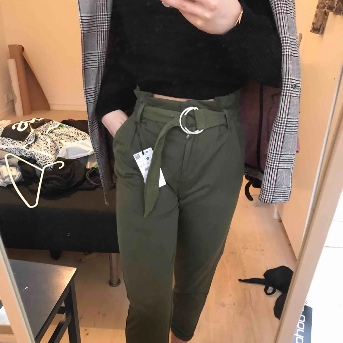 Ett par sjukt fina ”cargo” byxor med knytbälte. Dom är helt oanvända eftersom dom tyvärr är för små för mig. Strl 34. Nypris 299.