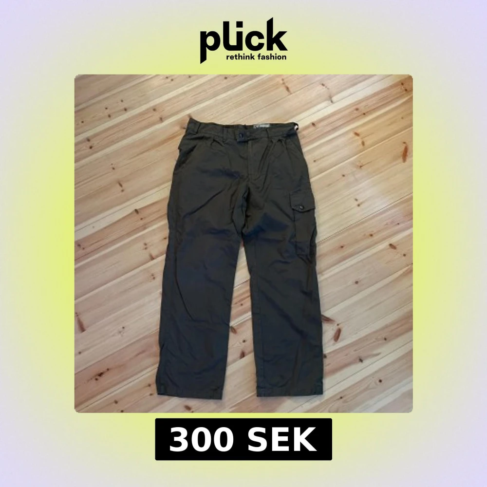 Säljer ett par mörkgröna cargopants med klassiska benfickor och avslappnad passform. Byxorna har knapp och dragkedja framtill samt bälteshällor. Perfekta för en chill och funktionell stil.
