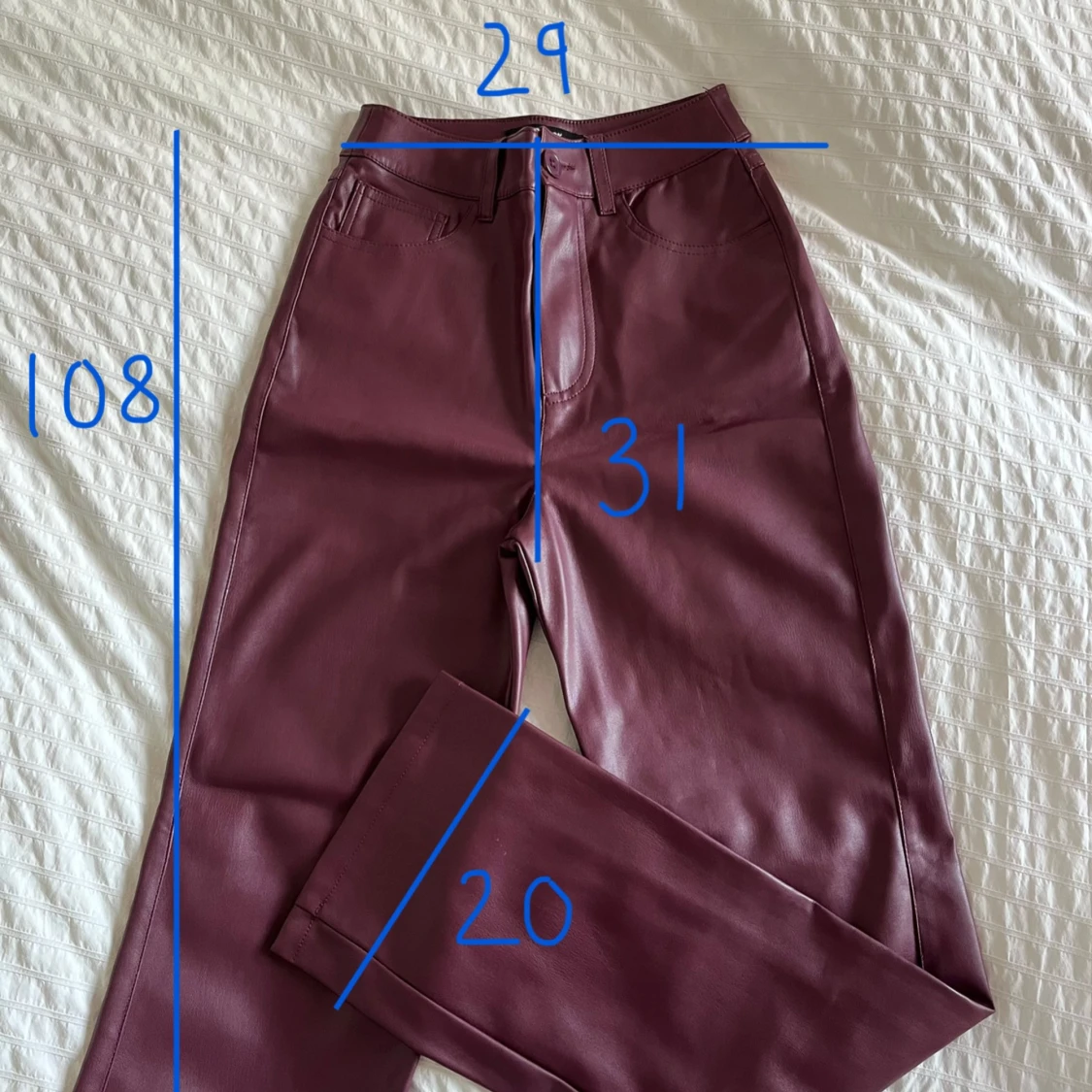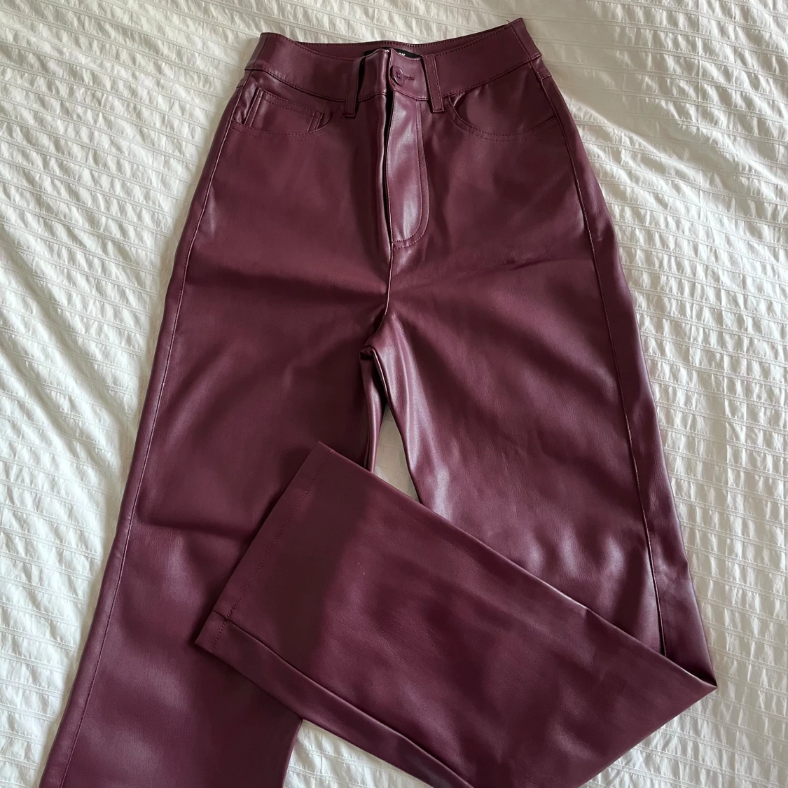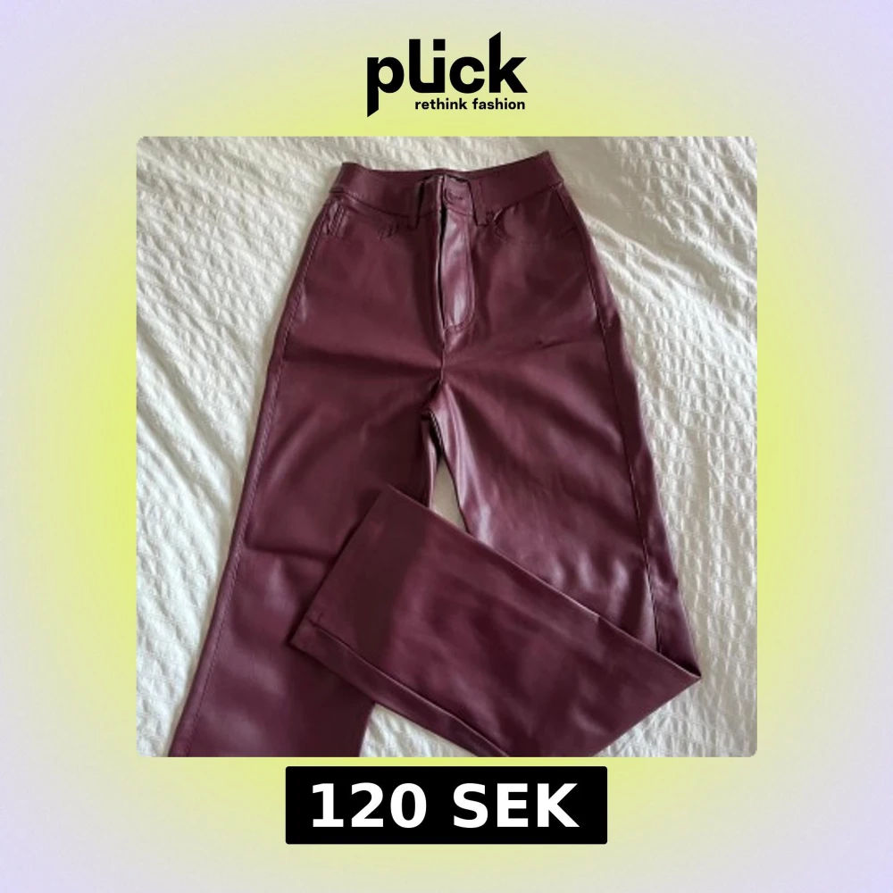 Vinröda skinnbyxor i läderimitation, knappt använda. Som referens är jag 161cm