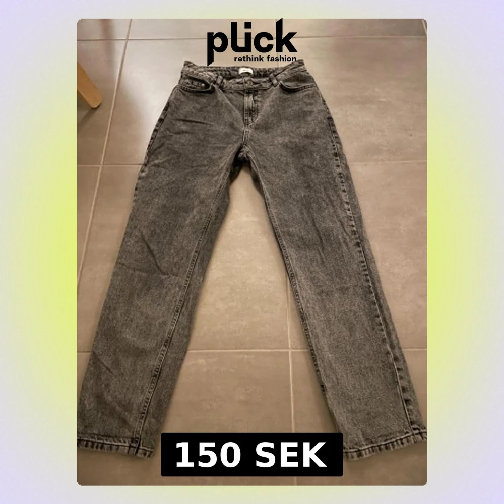 Snygga grå jeans från grunt med klassisk femficksdesign och rak passform. Jeansen har en tvättad look och svarta detaljer på bakfickan. Perfekt för dig som gillar en avslappnad stil med vintagekänsla.