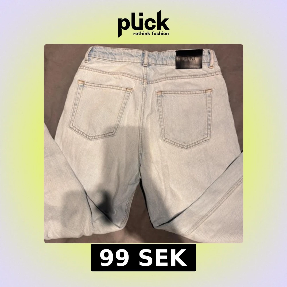 Säljer ett par ljusblå jeans från Grunt i klassisk femficksmodell. Jeansen har raka ben, normal passform och är tillverkade i bomull. En stilren look som passar till det mesta.