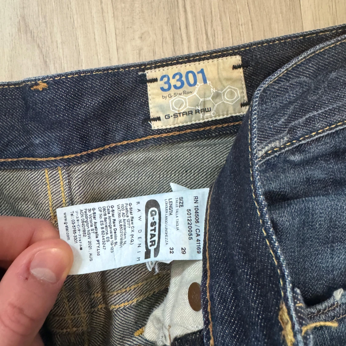 Säljer ett par snygga G-Star Raw 3301 jeans i en klassisk blå tvätt. De har en straight passform, strl 29/32