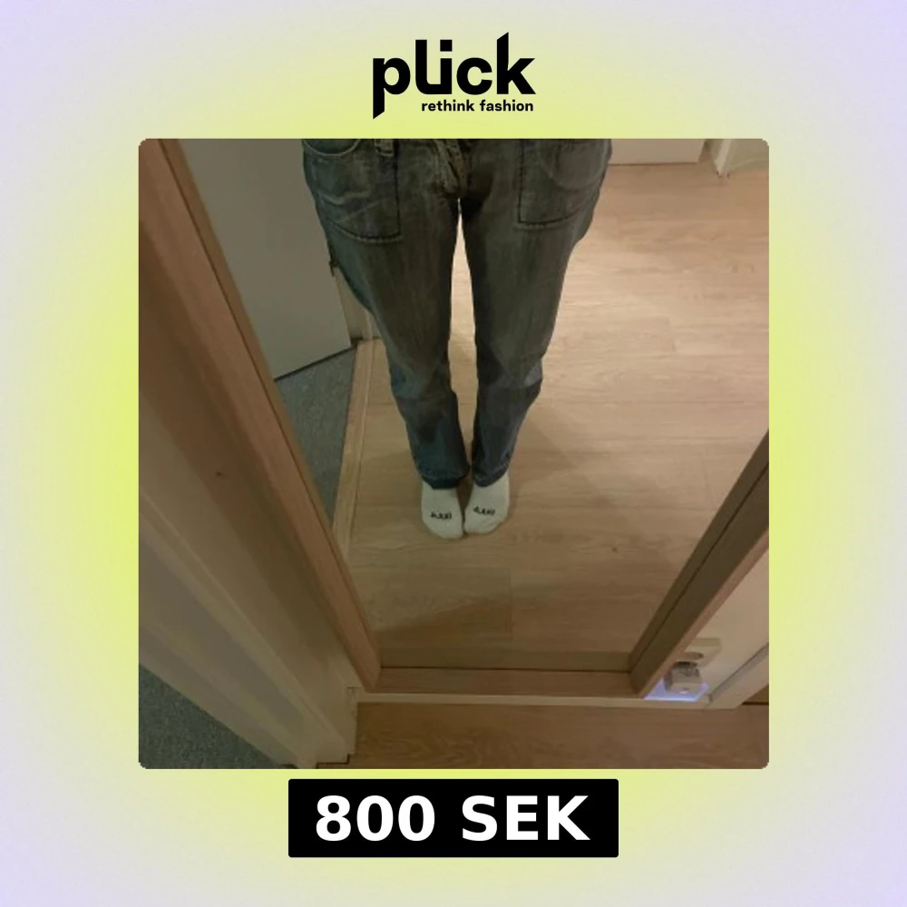 Säljer ett par snygga blå jeans, det står ingen storlek på men för referens är jag 162 och har ett midjemått på 80