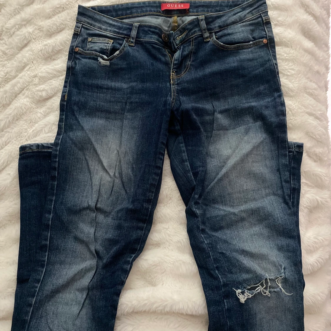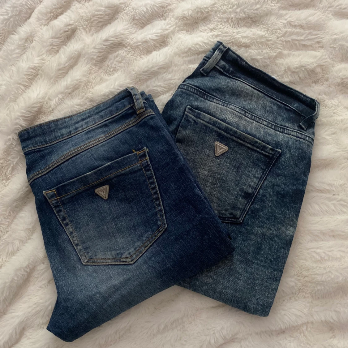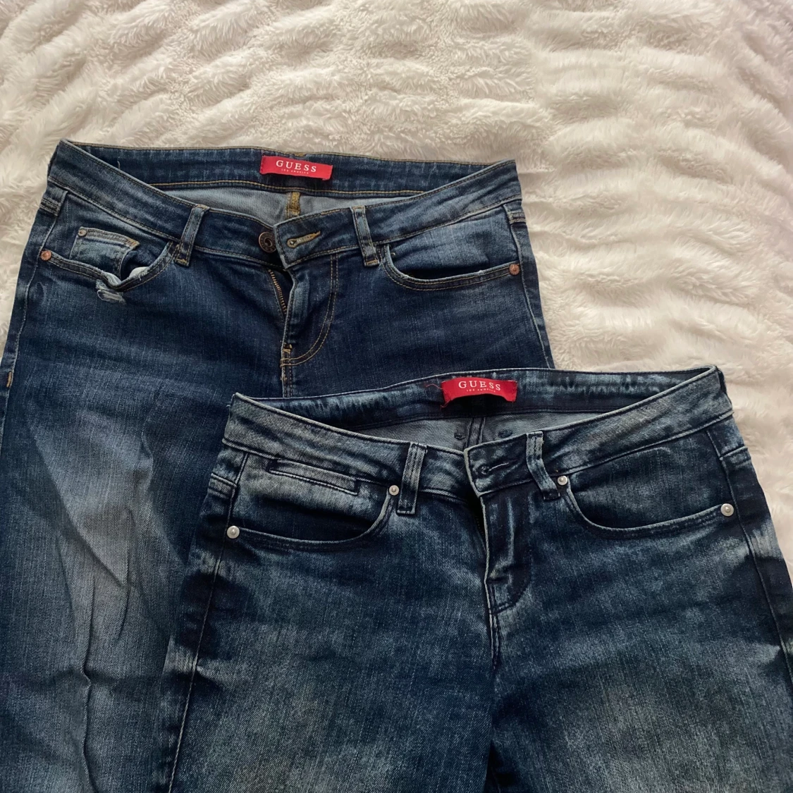 2 par guess jeans strl 26 De röda guess lapparna på insidan har släppt på ena sidan på båda paren🤍 120kr för ett par 200kr för båda OBS köparen står för frakten