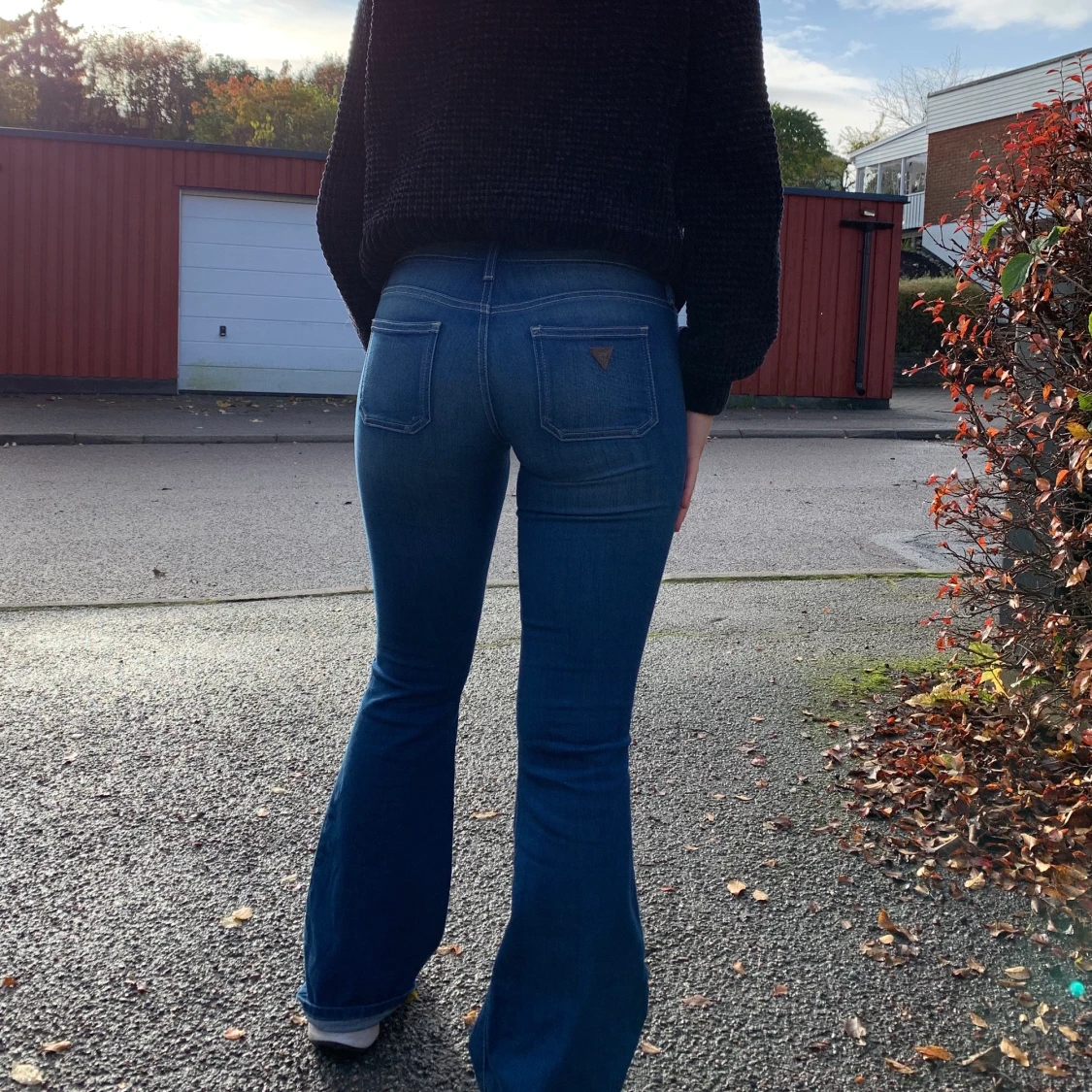 Bootcut byxor från Guess i storlek 25. Jag har storlek 36/28 i byxor (ibland 27 beror på modellen) och är 1,63 m lång, och dessa passar mig bra, lite förvirrande att de är i storlek 25. Frakt ingår ej men kan mötas upp❣️⚡️