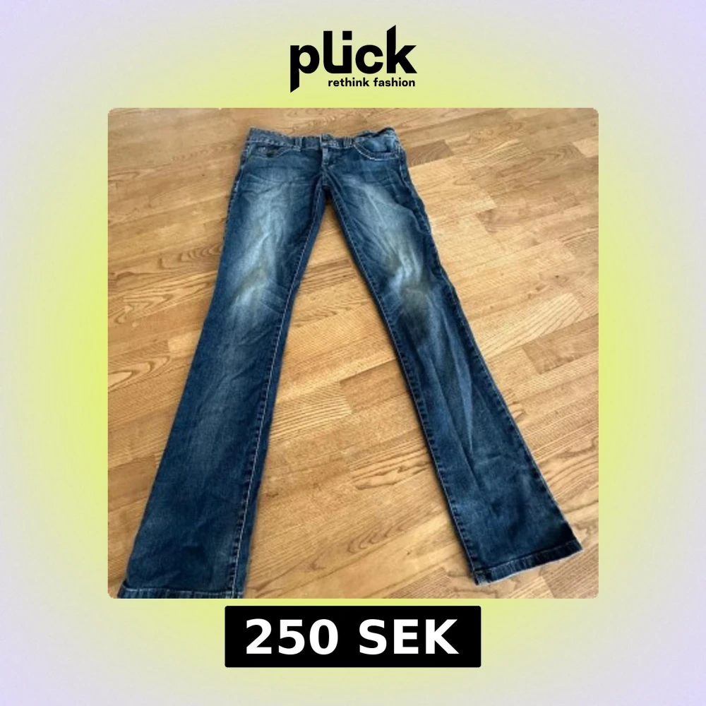 Säljer ett par lätt utsvängda väldigt lågmidjade jeans från märket guess. De är i jättebra skick, på lappen står det att de är ”straight” de är alltså utsvängda nertill men inte överdrivet mycket. Jeansen är strechiga och väldigt bekväma att bära. Midjemåttet är 40cm platt och innerbenslängden är 80cm. Storleken på etiketten säger 28, jag skulle säga att de motsvarar en S. Det är bara att höra av sig vid funderingar! 🥰