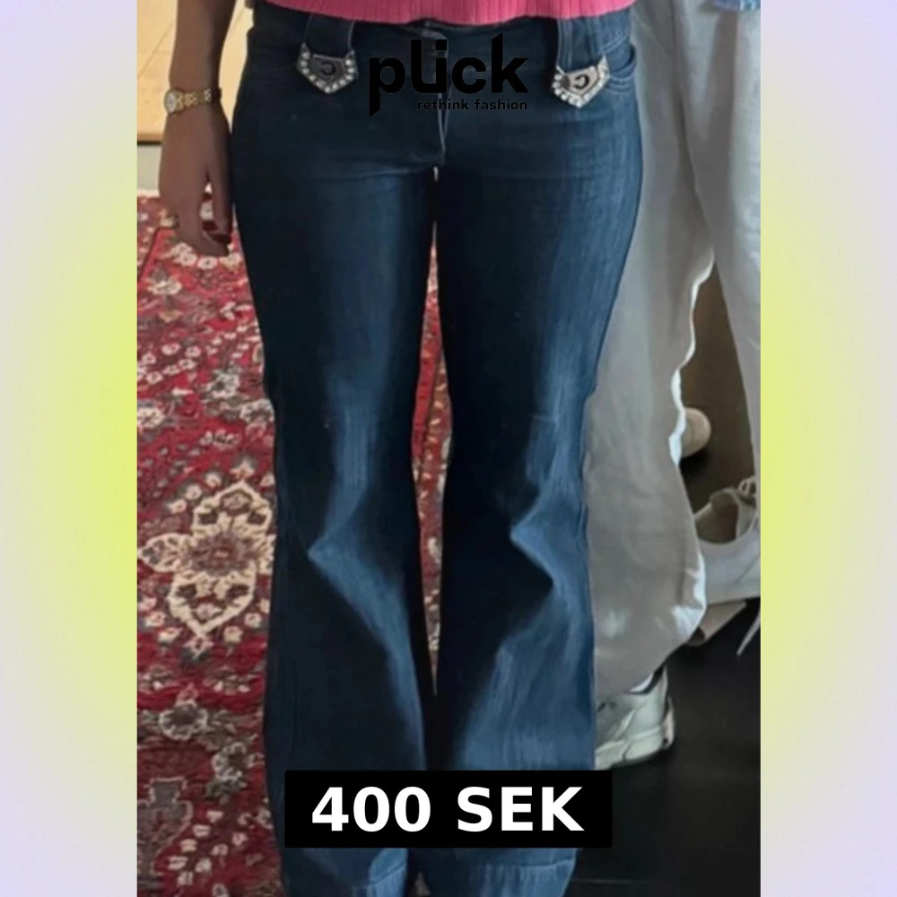 Köpta på secondhand. Så sjukt snygga! Midjemått: 37cm. Innerbenslängd: 78cm