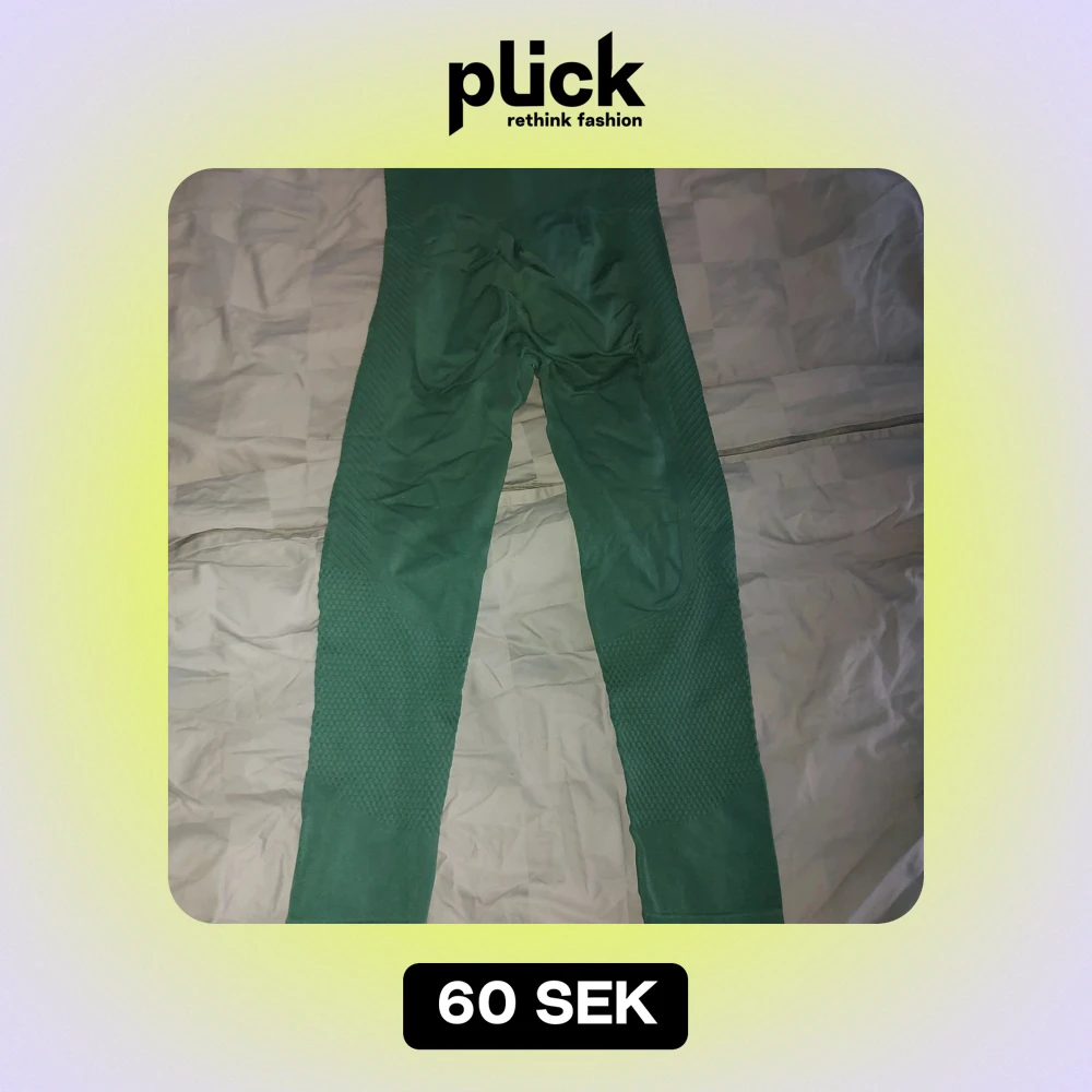 Säljer ett par gröna leggings i storlek M. De är tillverkade av 90% polyamid och 10% elastan, vilket gör dem superstretchiga och bekväma. Perfekta för träning eller en avslappnad dag hemma. De har en tight passform och är i mycket bra skick.