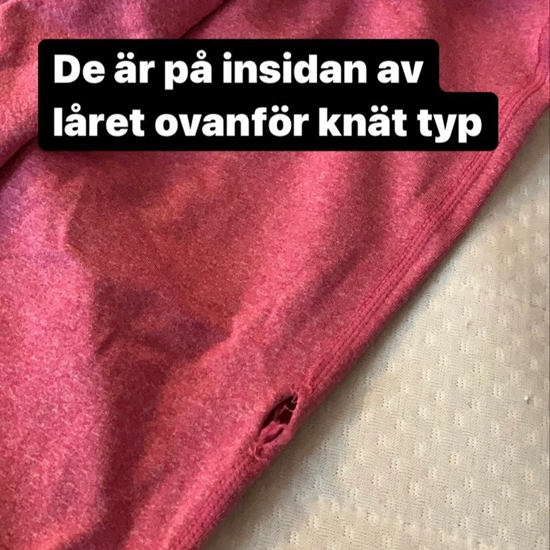Säljer dessa i strl M. De är ett liitet hål i sömmen som hamnar precis ovanför knät på insidan av låret på mig. Går att laga jättelätt eftersom de är på sömmen man jag har inte hunnit.