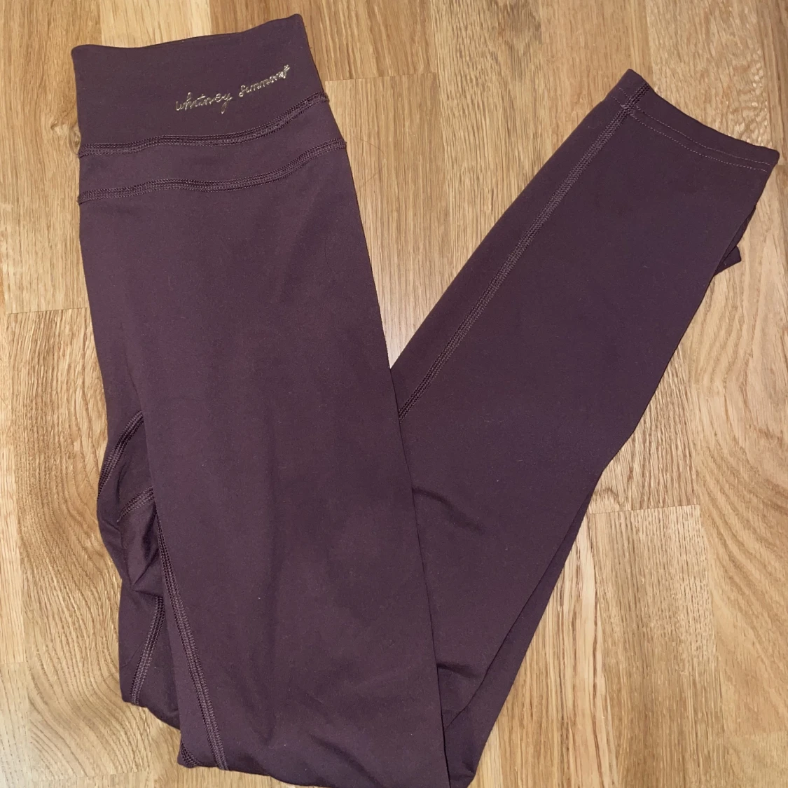 Tights från Gymshark x Whitney v2 i färgen cherry chocolate. Obs välanvända och därför blivit lite noppriga i tyget (därav priset).