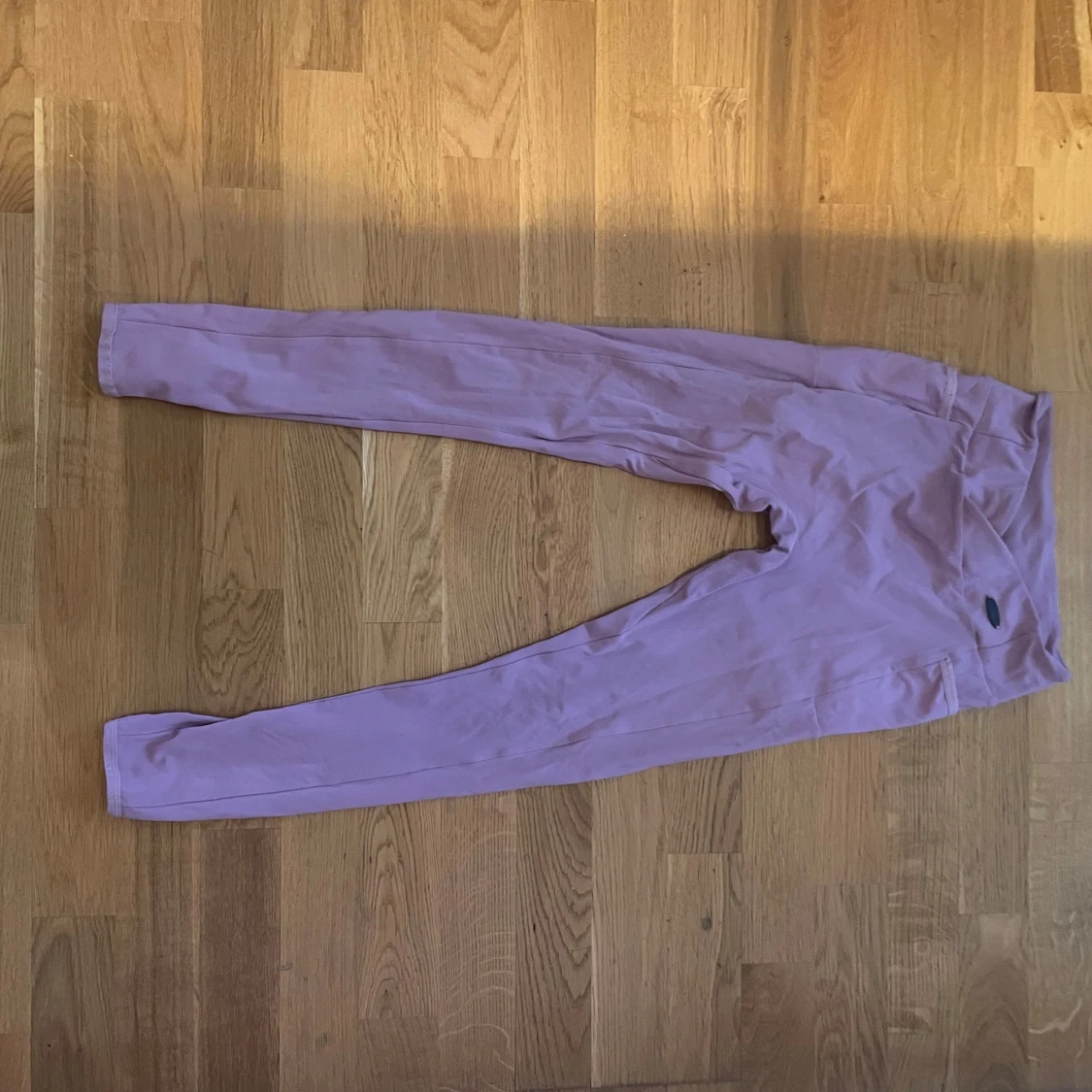 Säljer ett par ljuslila leggings med hög midja. De är tighta och har en mjuk, stretchig känsla som passar perfekt till träning eller chill. Snygg färg som sticker ut och sitter skönt på kroppen.