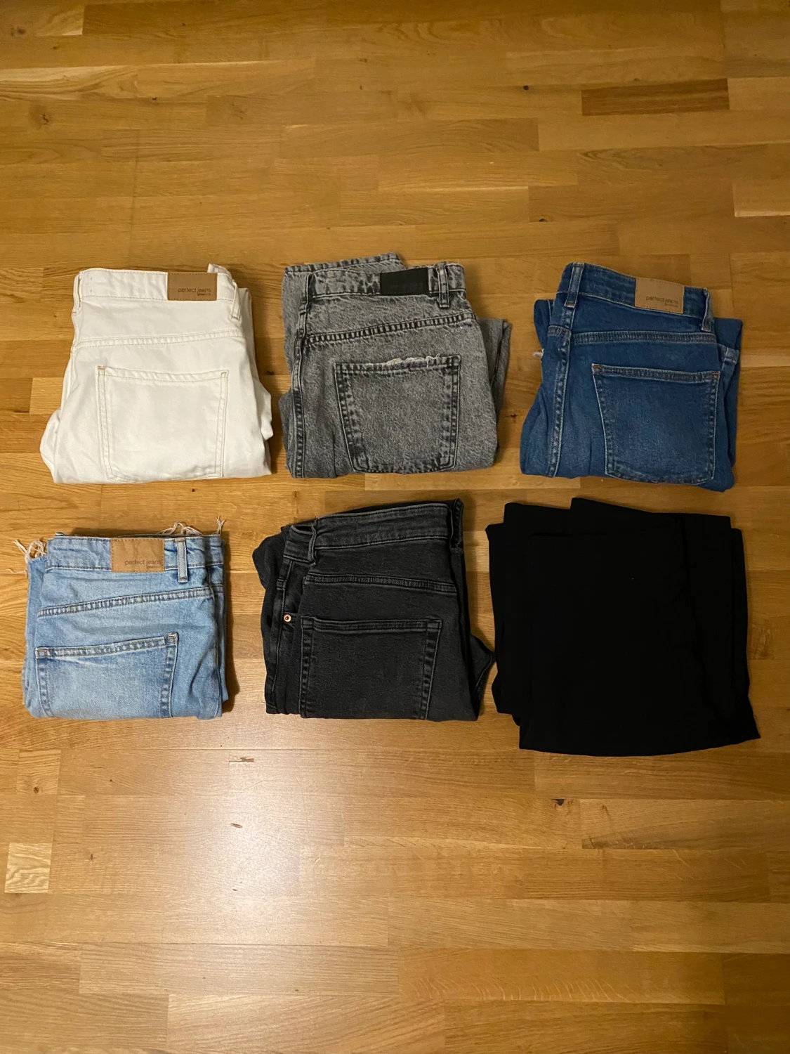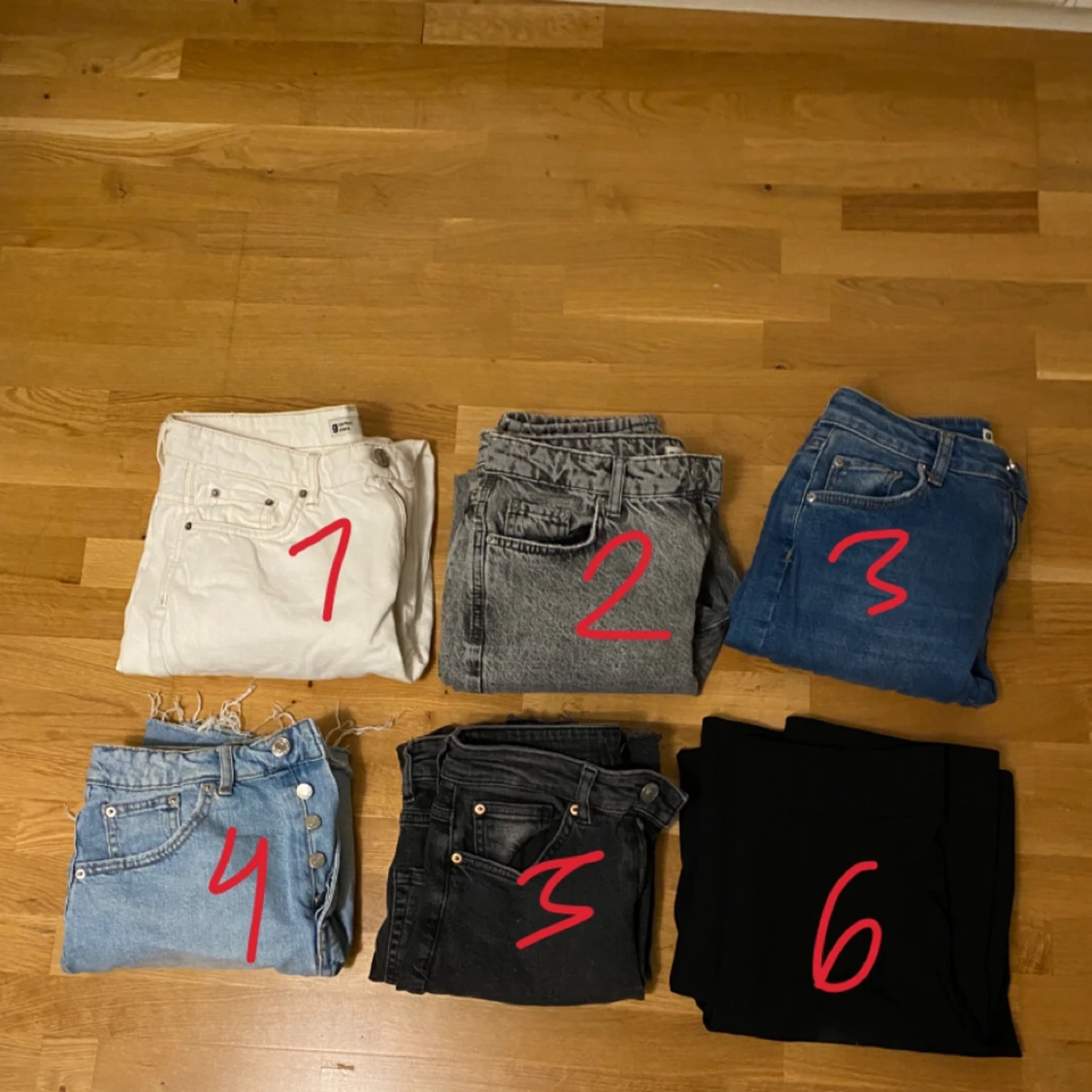 Säljer olika byxor som använts en gång! Man kombinera för ett billigare pris🙏🏼1. Gina stl 40- 90 kr 2. Gina stl 38- 90 kr 3. Gina stl 36- 90 kr 4. Gina jeanskjol stl 40 - 90 kr 5. H&m stl 40- 60 kr 6. Gina byxor stl XS- 60 kr Skriv vid frågor💟