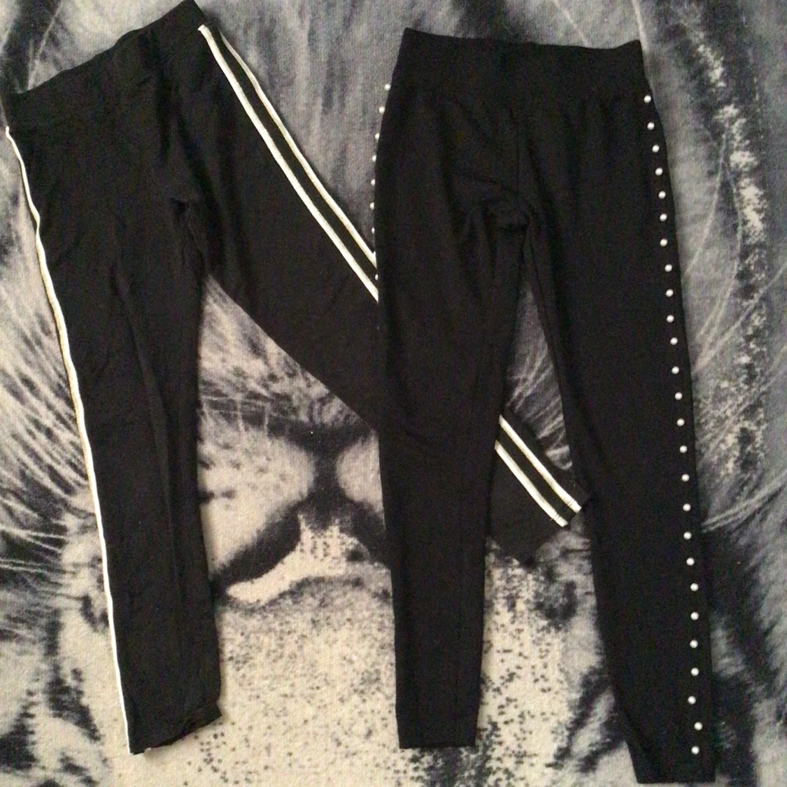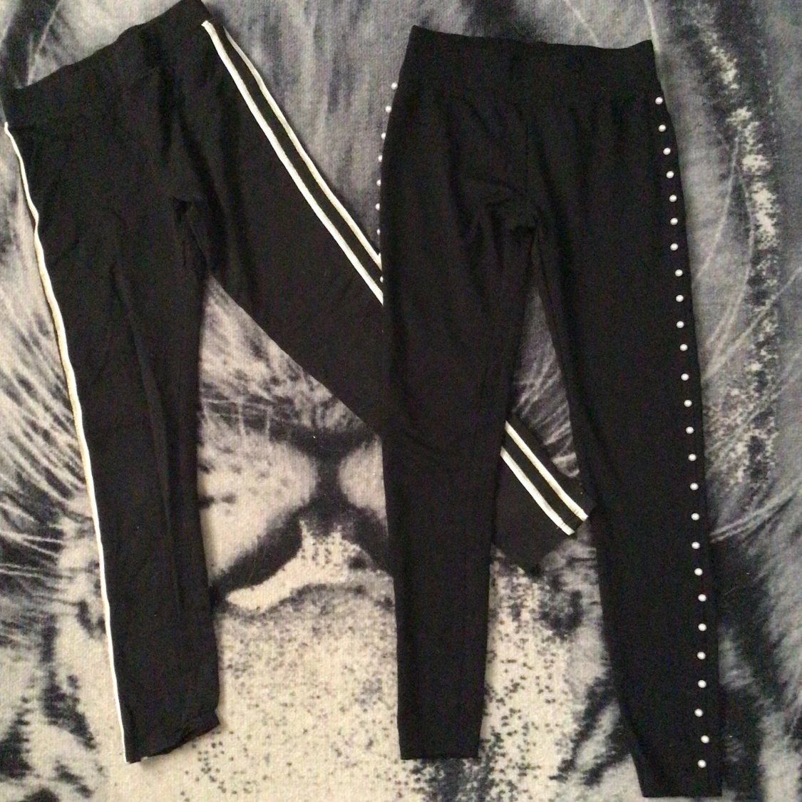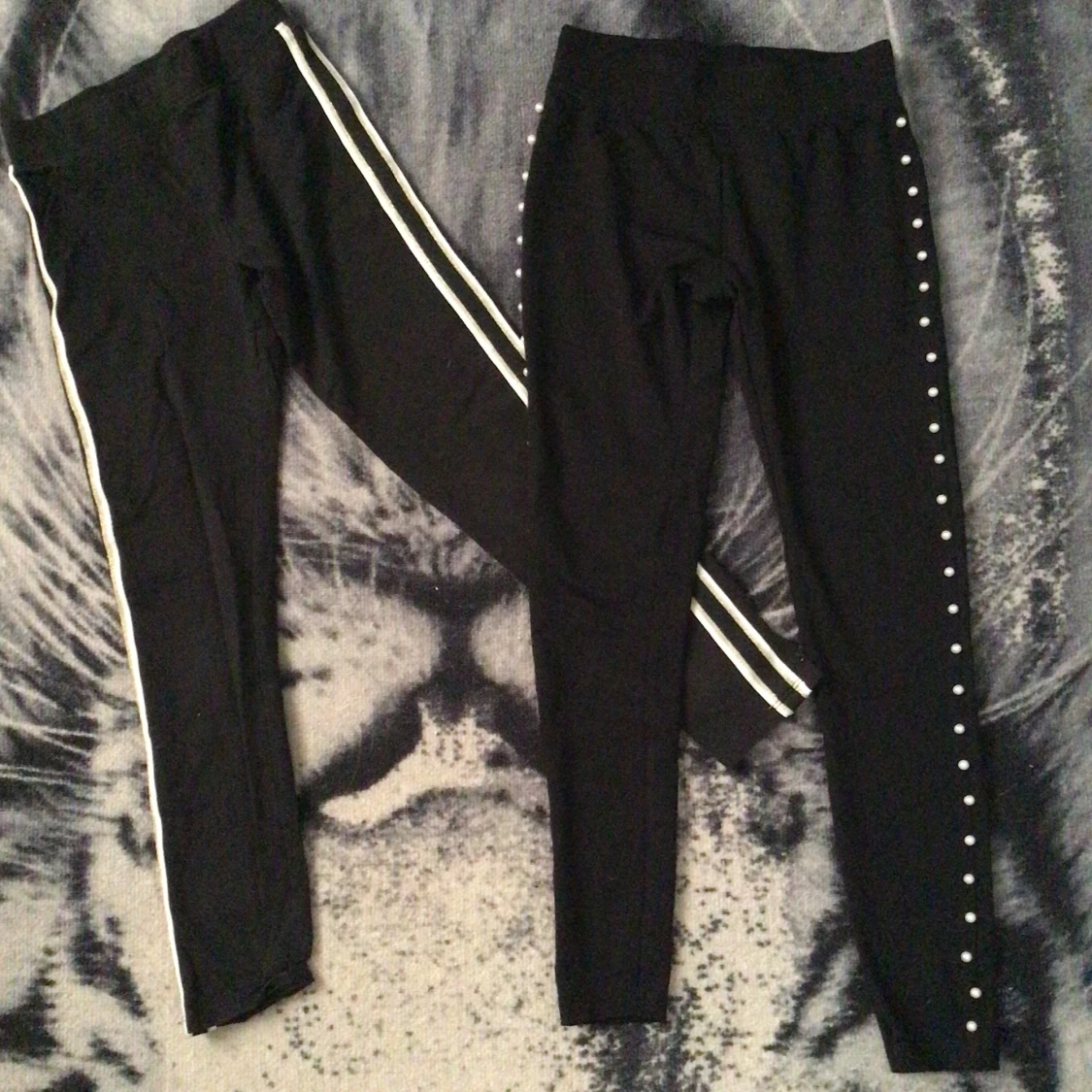 Två par svarta tights. Ett par med guldtand och vit rand. Ett par med pärlrand. 40kr/st 60kr paketpris