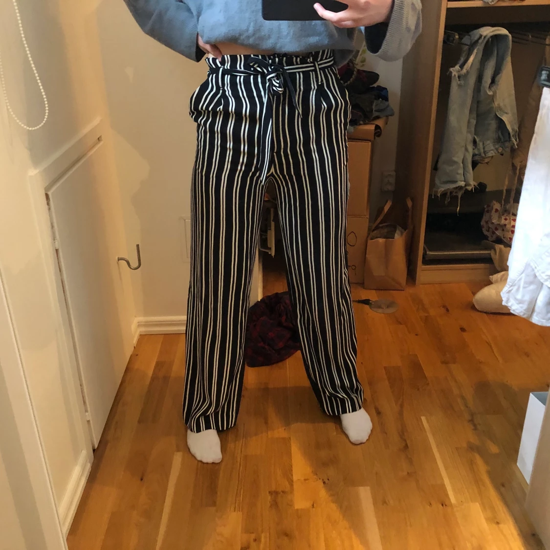 Säker dessa coola kostymbyxor från H&M. Blå och vit randiga, långa ben och ett band som man knyter runt midjan. Säljer då jag ej använder dom. St 34 men funkar även på mig som är en 36a. 70kr exklusive frakt.🌟