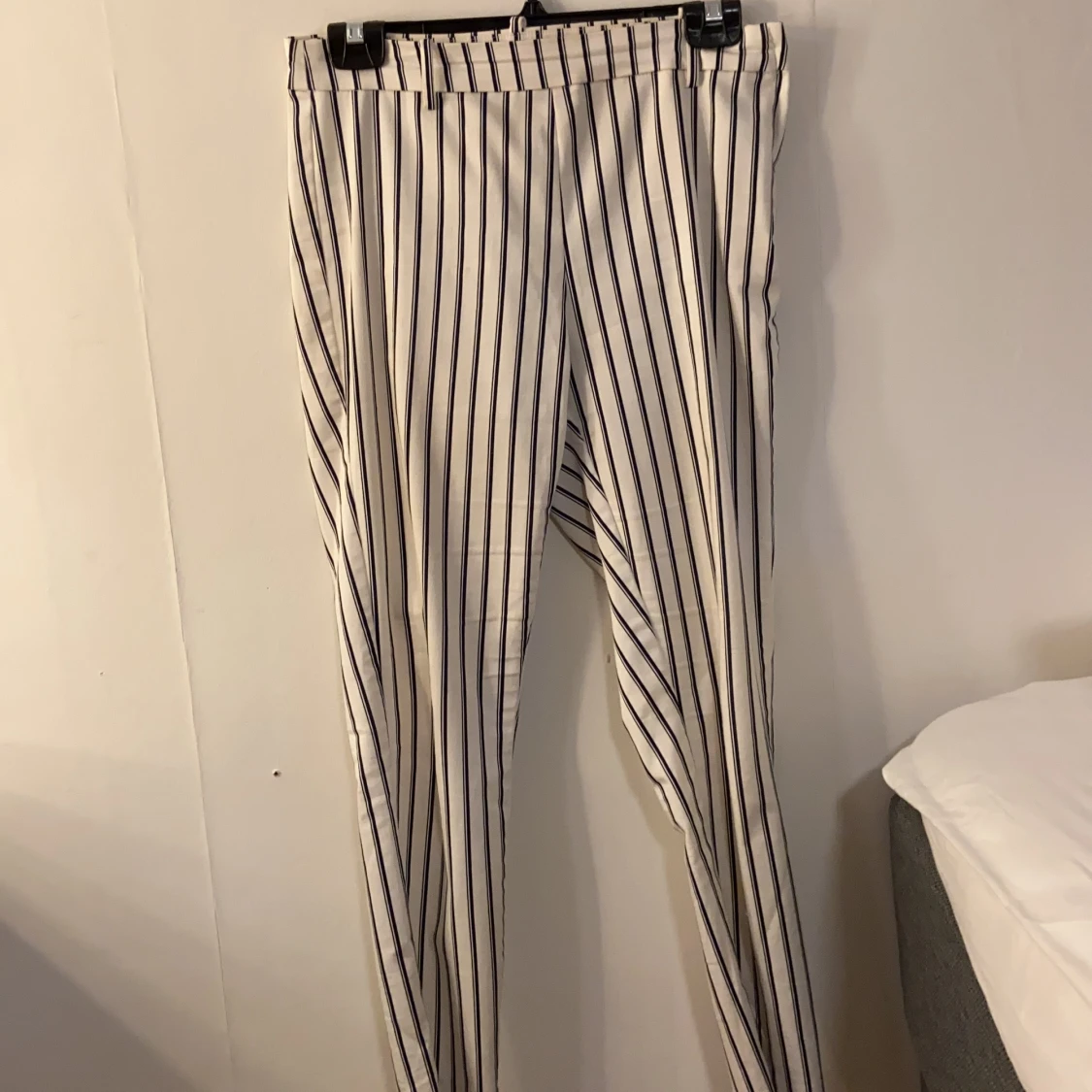 Randiga slacks från H&M. Samma passform som andra slacks/kostymbyxor.