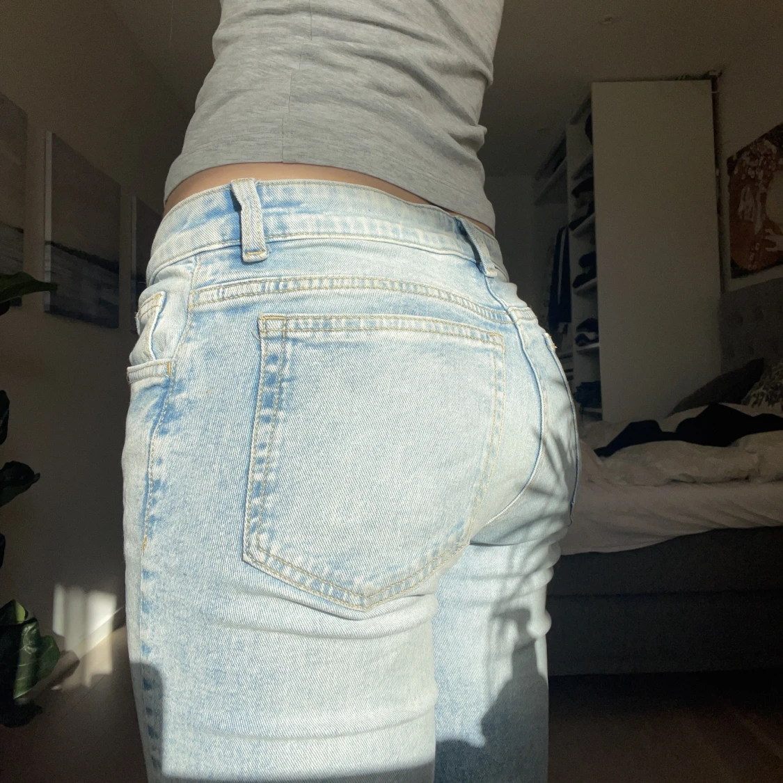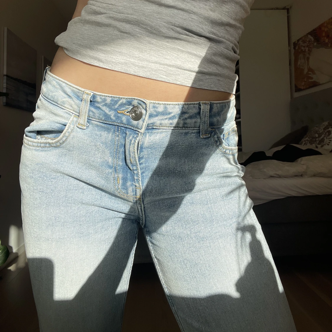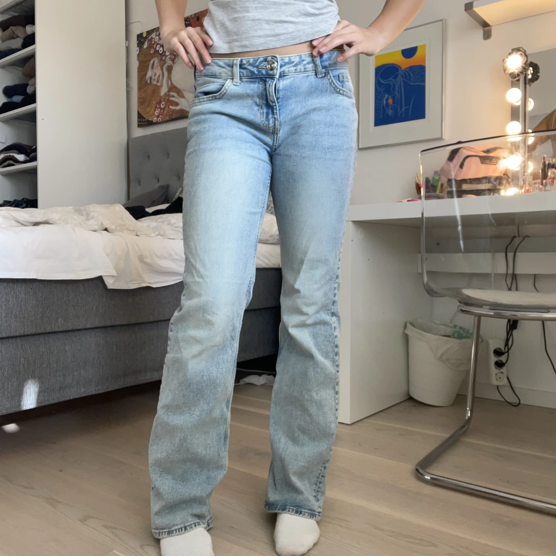 Säljer dessa lågmidjade ljusblåa bootcut jeans köpta från H&M! Sjukt snygga och passar med typ allt!😍😍