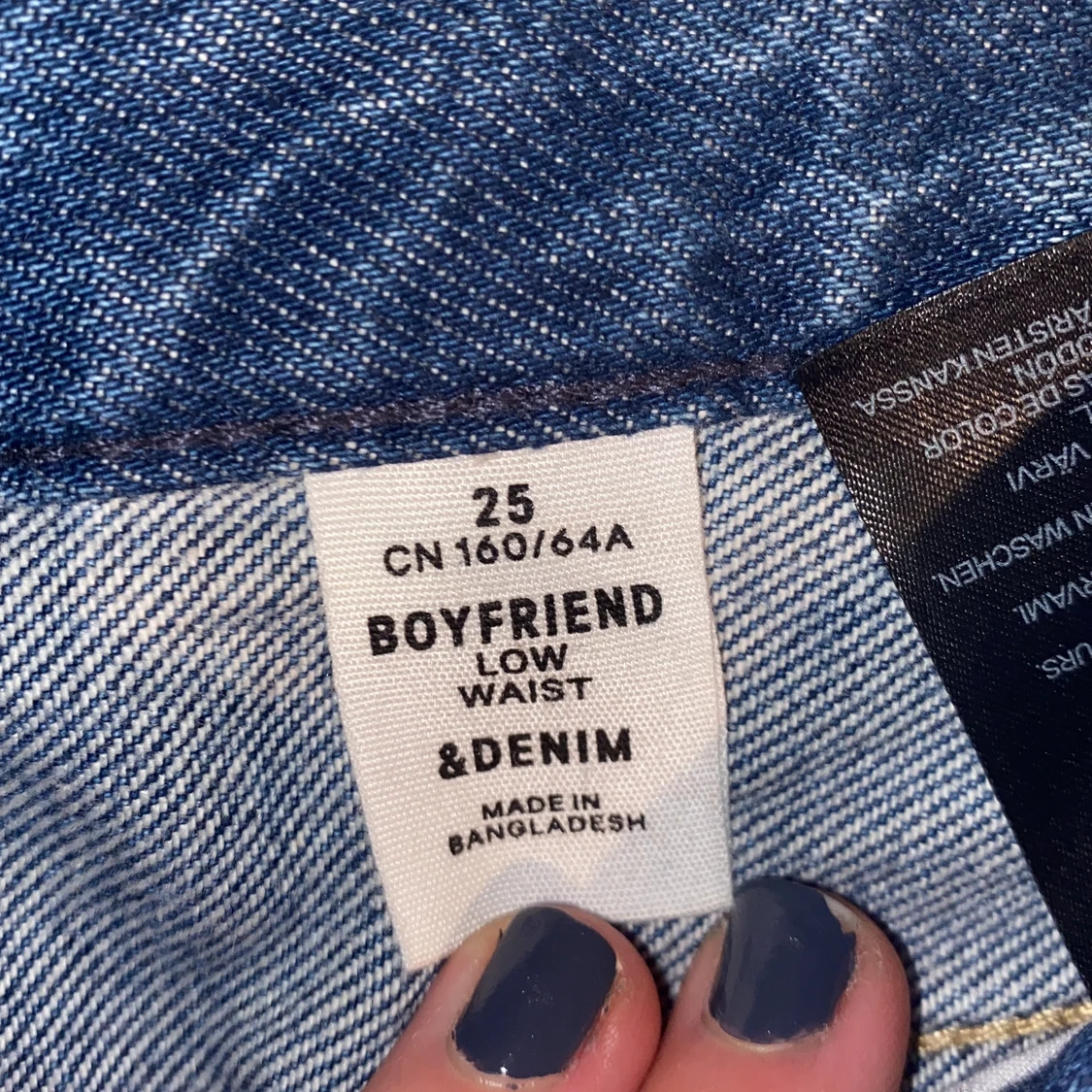 Säljer dessa mom jeans från Hm i strl 25. Helt oanvända, säljer på grund av att de är för små. Kontakta mig om du är intresserad💕