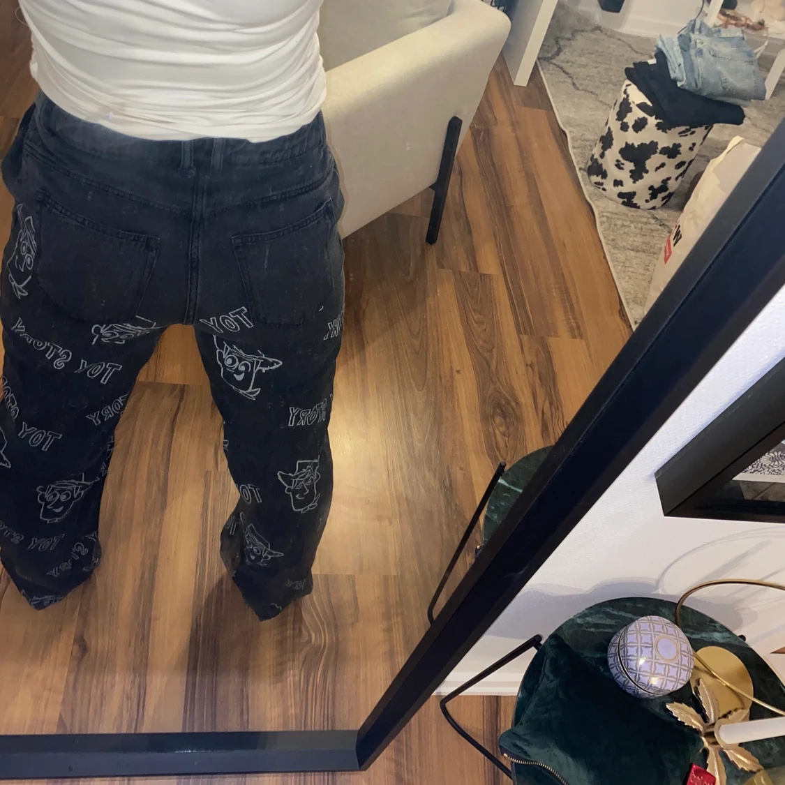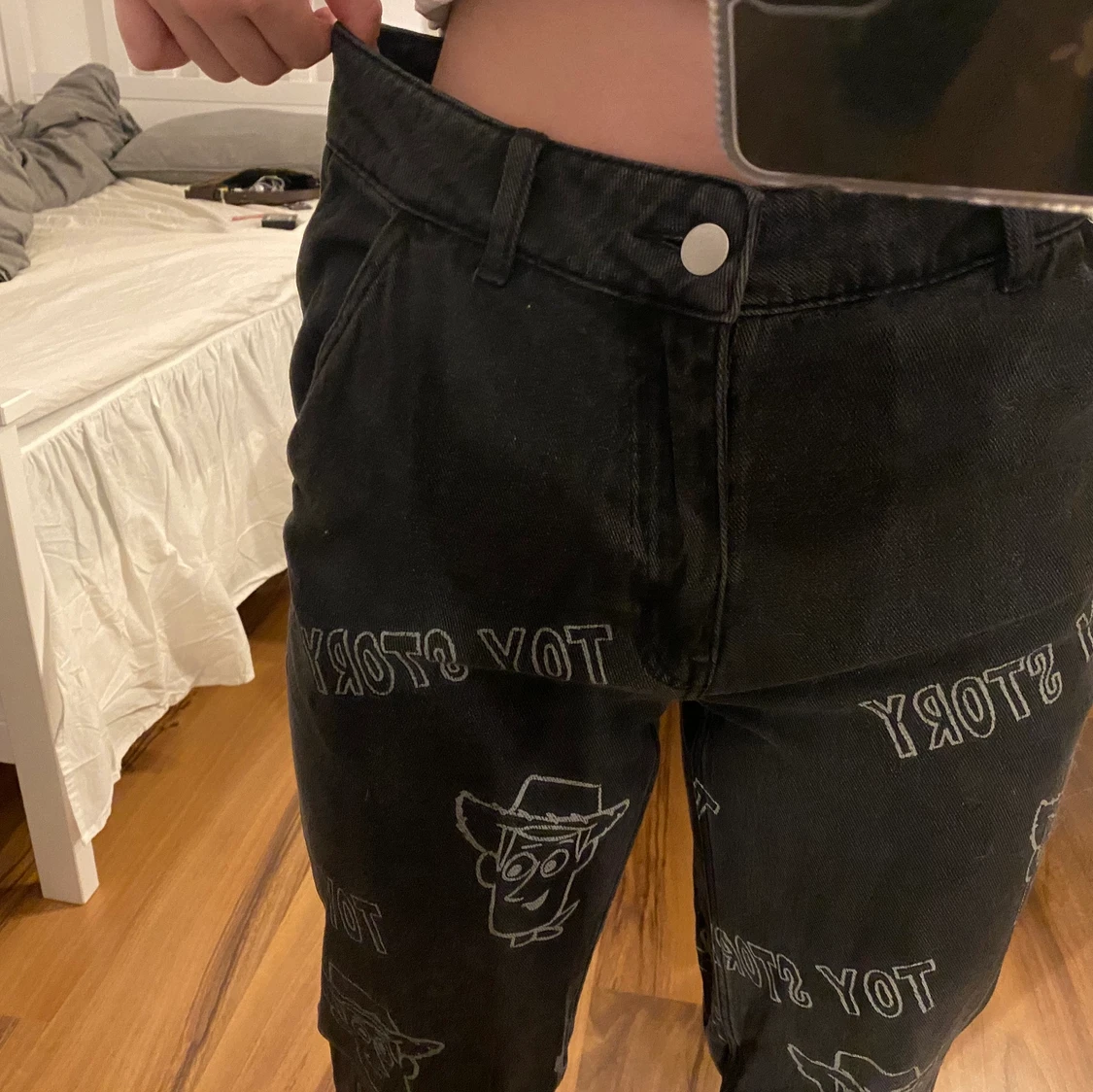Toy story jeans från hm i storlek 36. Är 155 lång och är 65cm i midjan, midja är för stor för mig, skulle gissa att de passar en 75cm. Aldrig använda!