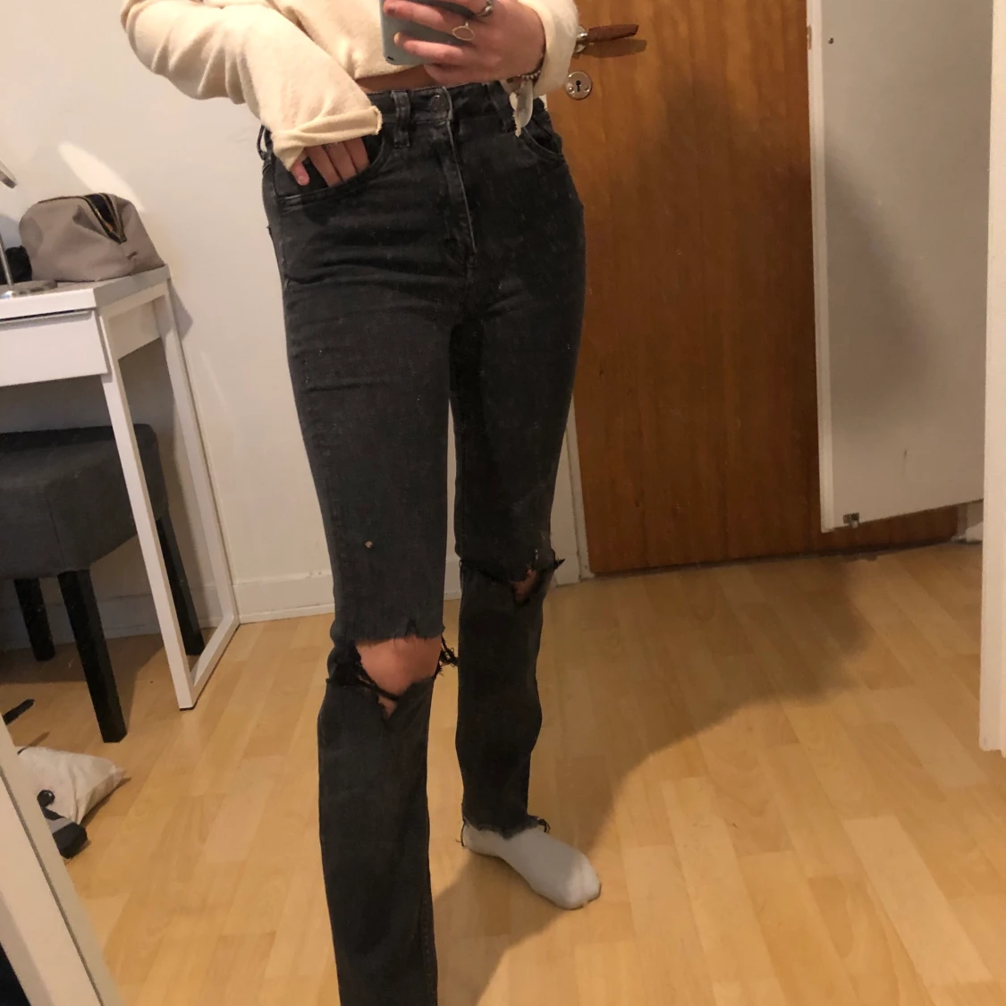 Raka jeans från H&M som är lite mer gråa än vad bilden visar. Är hyfsat används där av priset. Storlek 27 men små i passformen. Säljer för 100kr + frakt.