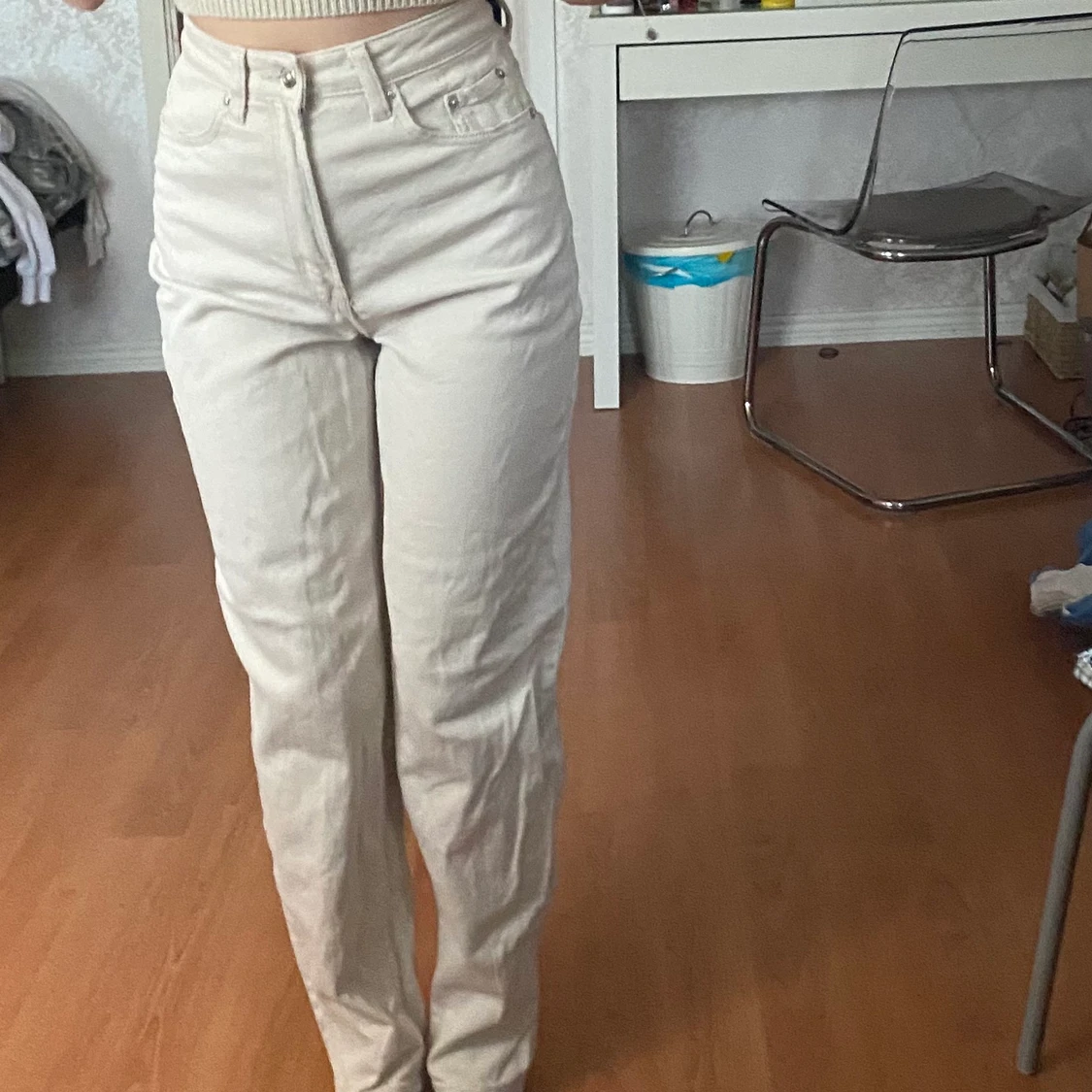 Super snygga beiga jeans💗💗 endast använda en gång så de är som nya💗 de sitter perfekt i midjan på mig som vanligtvis har XS-S