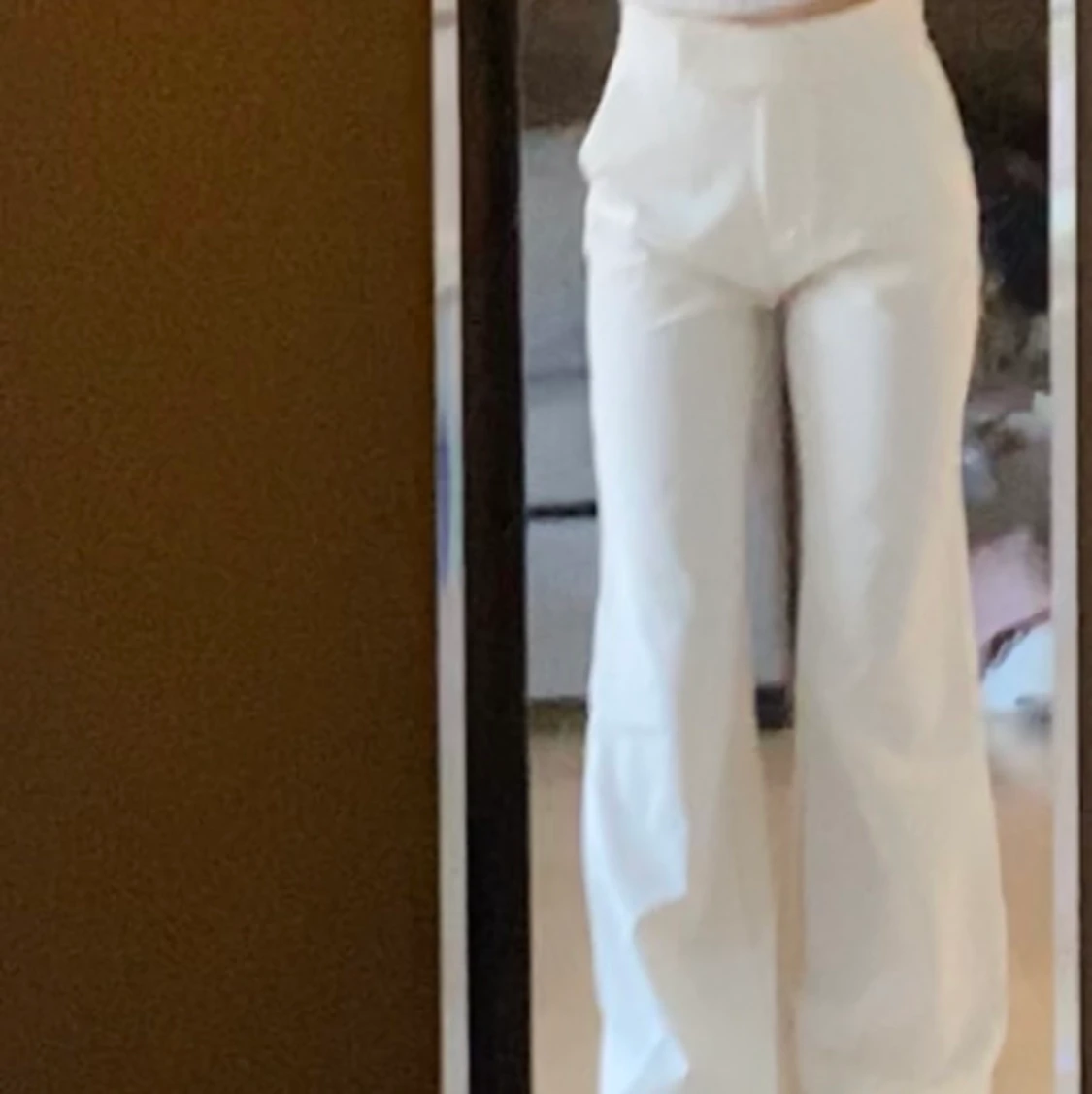 Fina kostymbyxor från hm som är rätt använda! Säljer dom eftersom dom inte kommer till användning längre. Dom är uppsydda för att passa någon som är runt 160. Byxorna har en liten fläck där bak på benet men det är något som säkert går bort, därav priset!